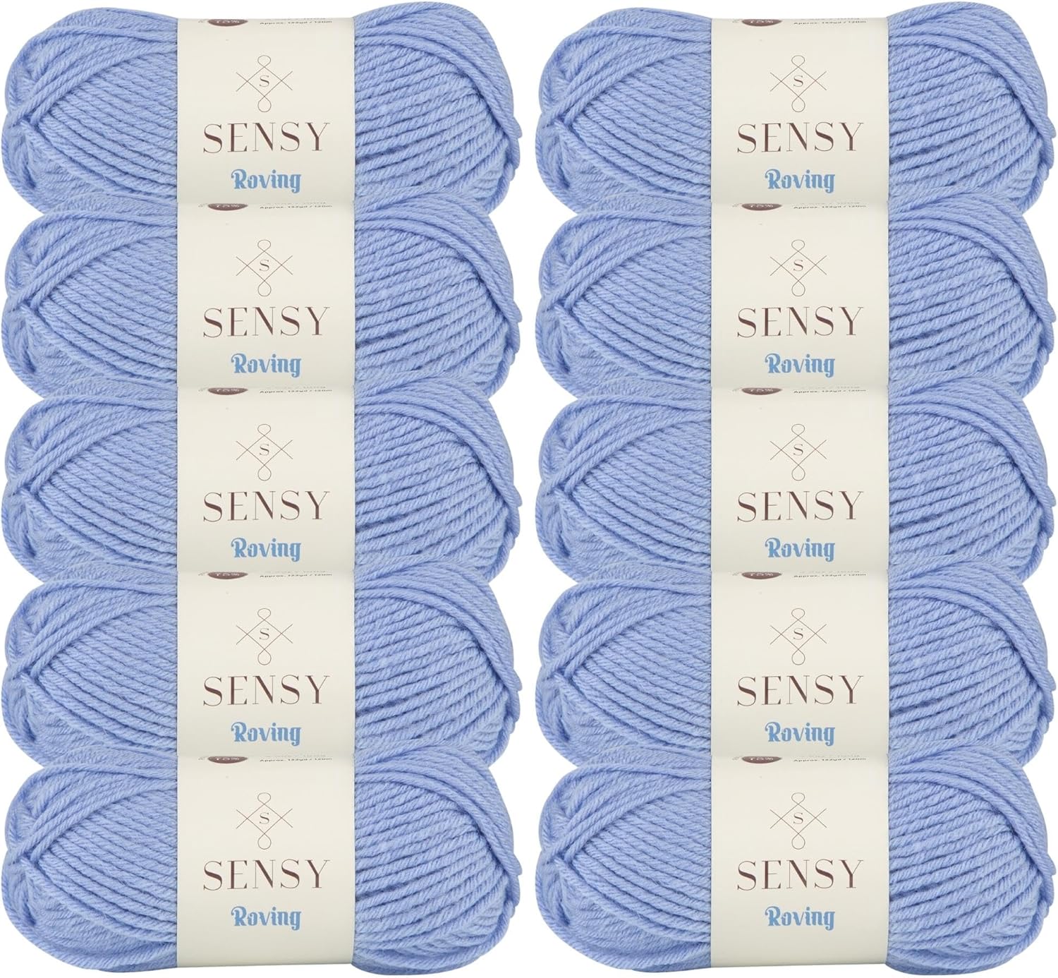 10 Skeins of Sensy Roving Yarn, 3.5 oz, 132 Yards, Gauge 5 Bulky (Baby Blue)
