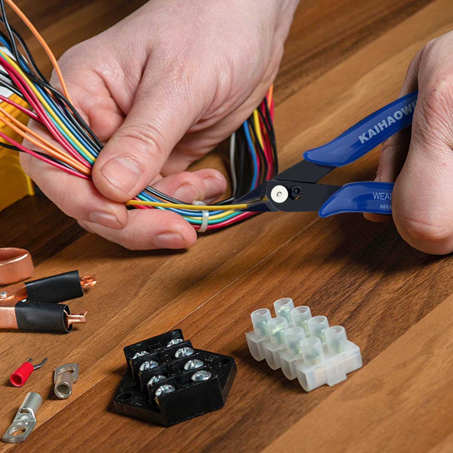 KAIHAOWIN Micro Wire Cutters with Spring, 2 Pack, 5 inch Precision Mini Flush Cutters Bulk, Nippers, Flush Cutting Pliers, Wire Snips, Small Side Cutters for Electronics Crafts Jewelry-Blue