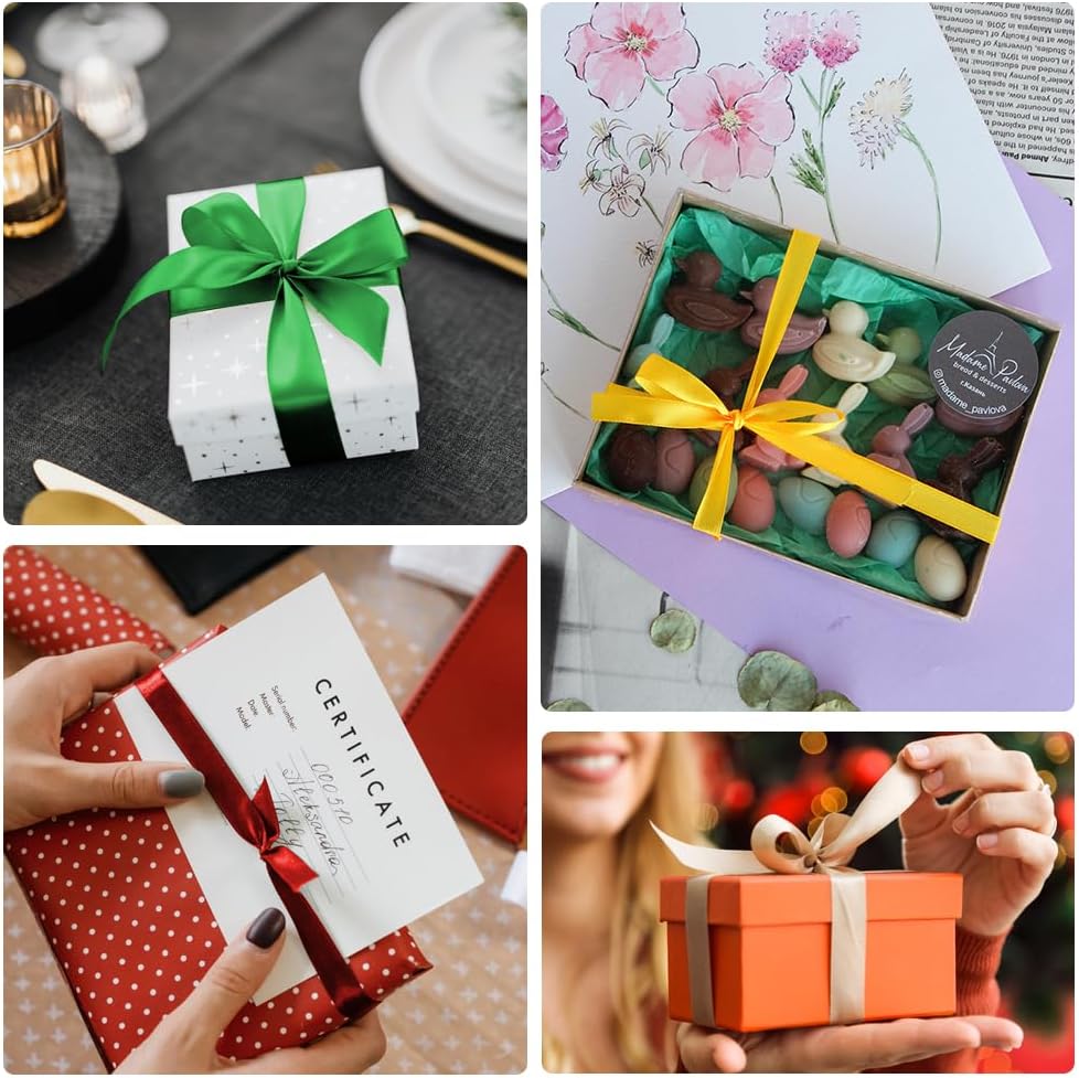 - 【PREMIUM RIBBONS】 Our fabric ribbons is made of high quality polyester. Feature on smooth, soft and silk surface without any wrinkles. The color of the ribbon is the same as that shown in the picture, and there is no color difference. It is the best ribbon to choice for gift wrapping and crafts.