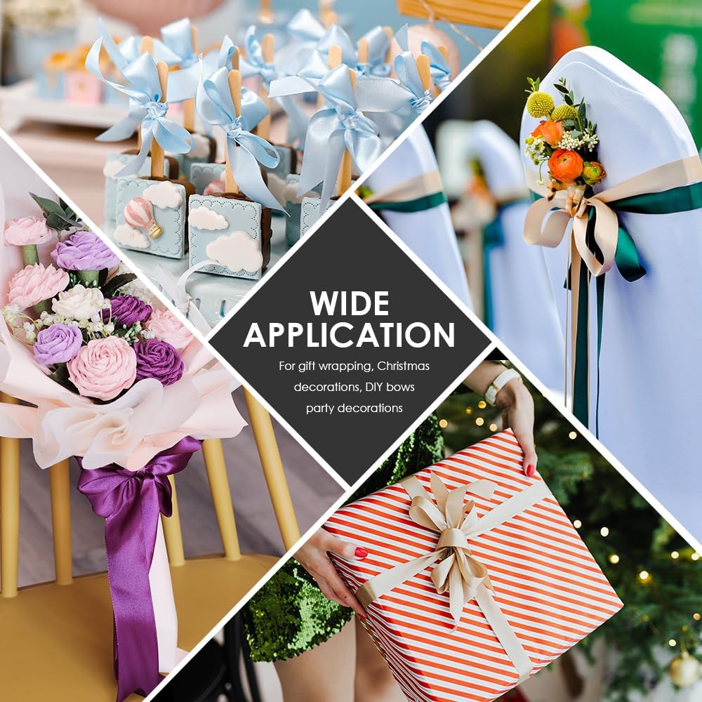 - 【RIBBON FOR CRAFTS WIDELY APPLICATION】 Our fabric ribbon is perfect for craft, gift wrapping, DIY bows, Christmas decoration, wedding invitations card, wedding decoration, hotel decoration, party decoration.