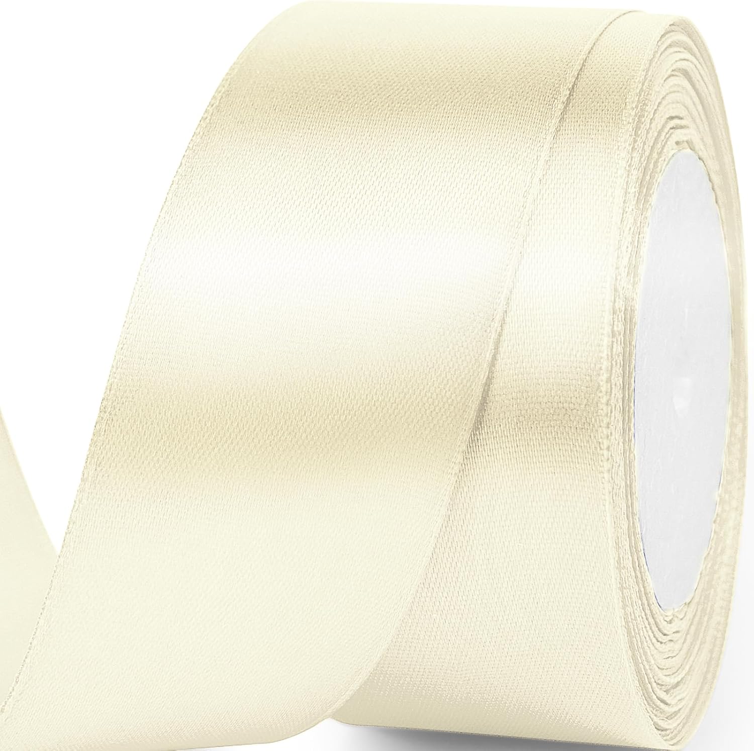 1-1/2" x 25 Yards Satin Ribbon, Ivory Silk Ribbon Ideal for Gift Wrapping, Floral Bouquets, Crafts, Wedding Party Decorations, Christmas and Sewing Projects