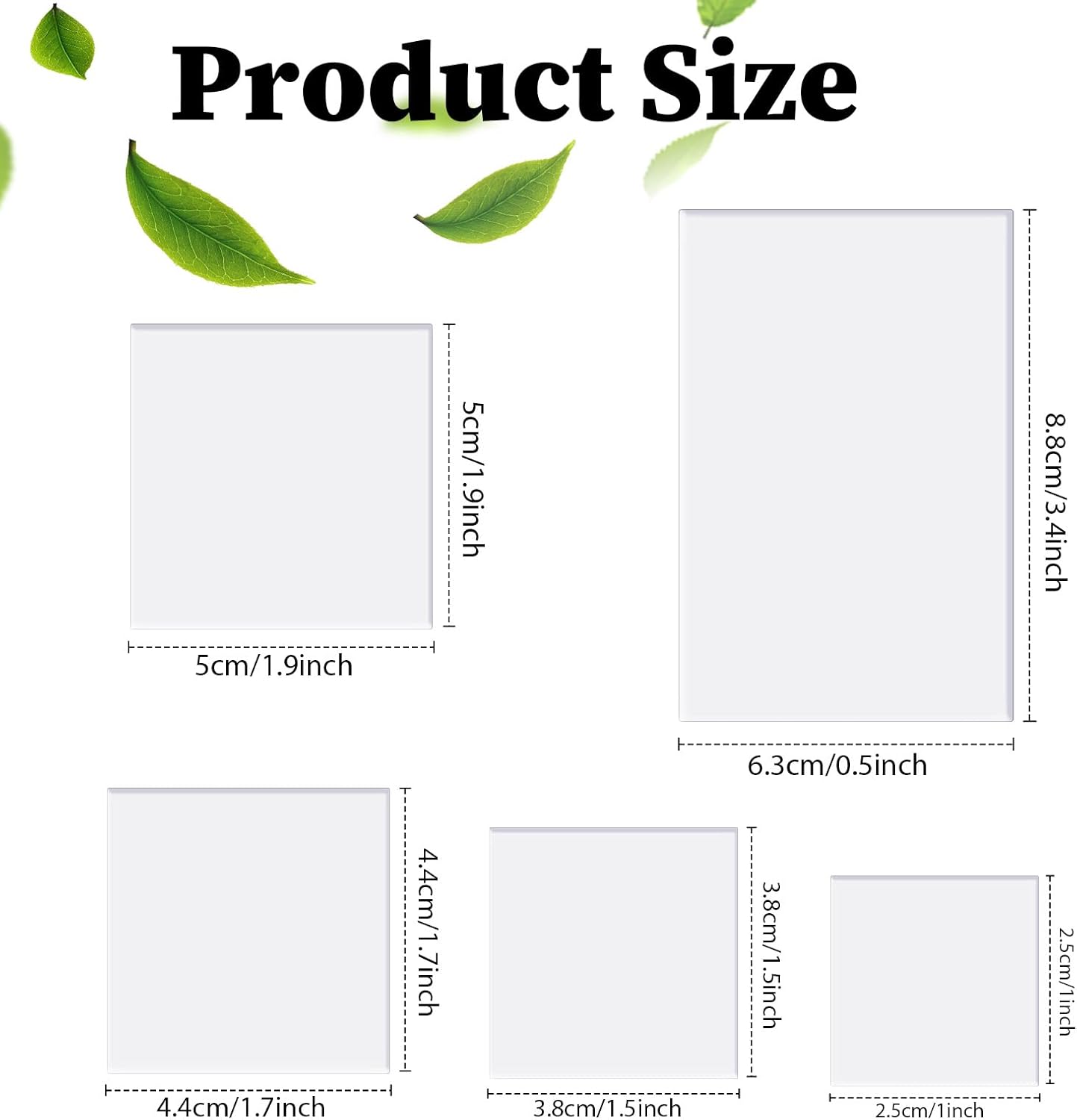 - DIVERSE SIZES - The acrylic flat lay props comes in different sizes, ranging from 8.8 x 6.3 cm to 2.5 x 2.5 cm, all with a thickness of approximately 1 cm. These sizes cater to different display needs and are easily portable and stored.
