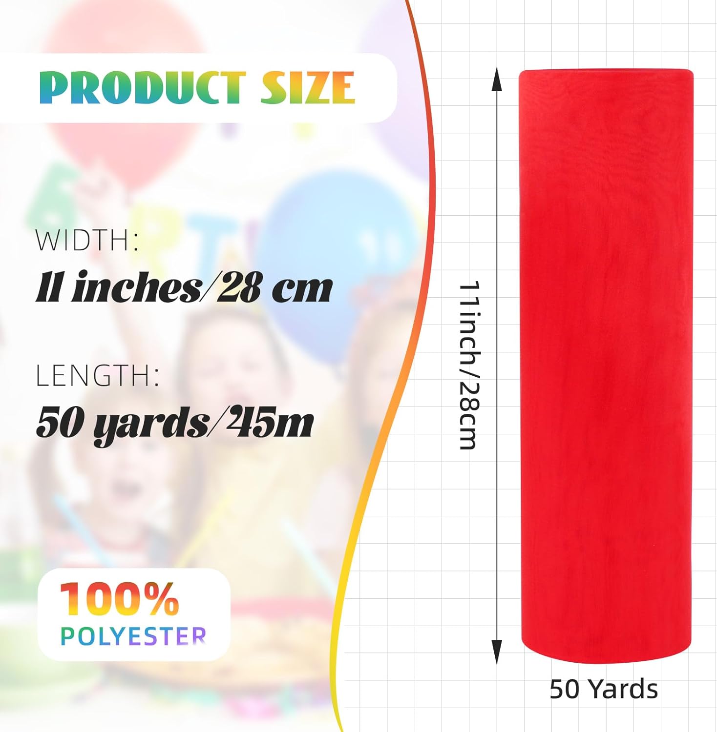Crystal Organza Fabric Tulle 11 Inch by 50 Yards Sheer Tulle Rolls for DIY Craft Wedding Party Baby Shower Decor Gift Wrapping Party Supplies (Red)