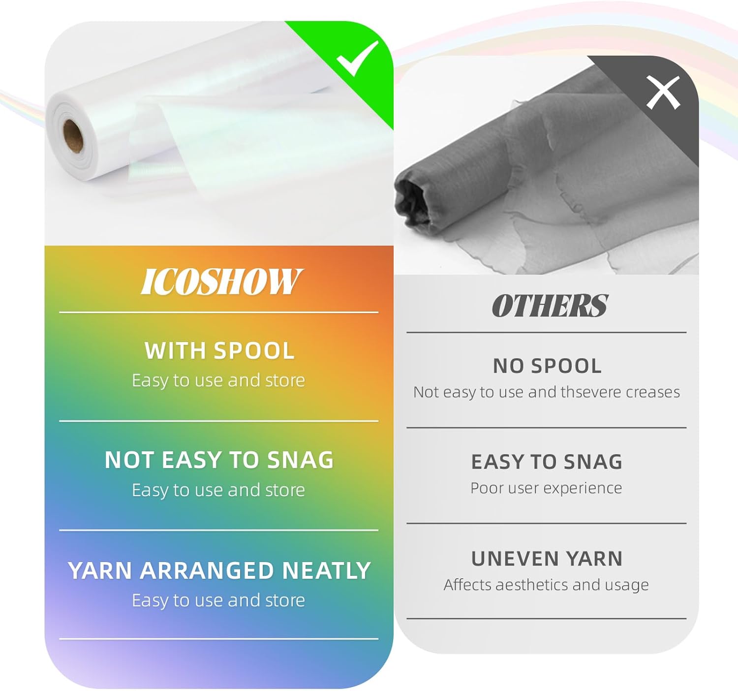 - 【Convenient to Store & Use】Cut it freely according to the length you want, and the edges will not unravel. The organza fabric wraps neatly around a paper core for easy folding and storage. It can maintain its vivid original color after repeated use, and it is not easy to fade.