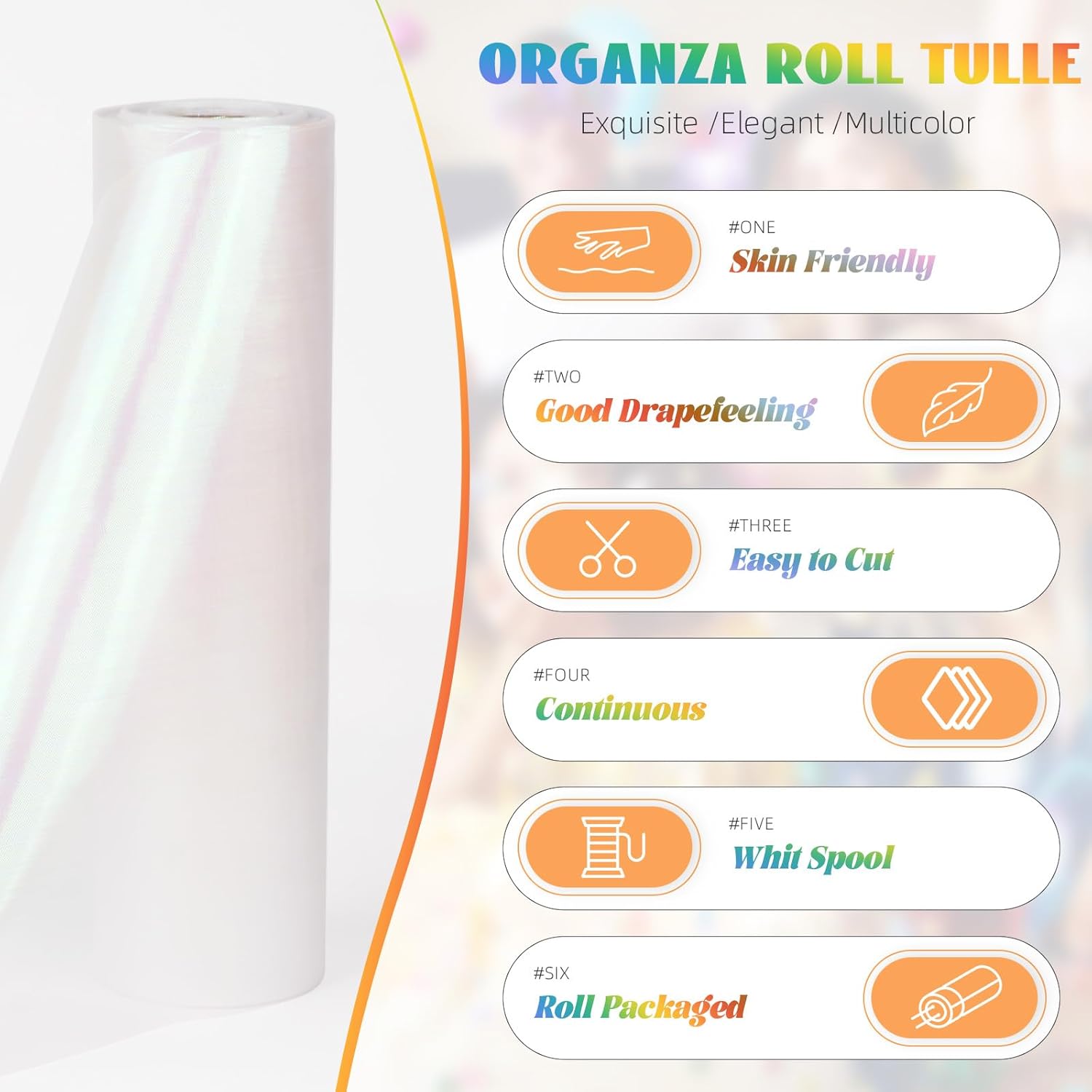 - 【Widely Used Scenarios】Organza tulle is suitable for making party backdrops, chair sashes, gift wrapping, bouquet packaging, christmas tree decor, dresses, sheer curtains, capes, sashes and more. Great for birthday party, bridal shower, baby shower, prom, and other occasions.