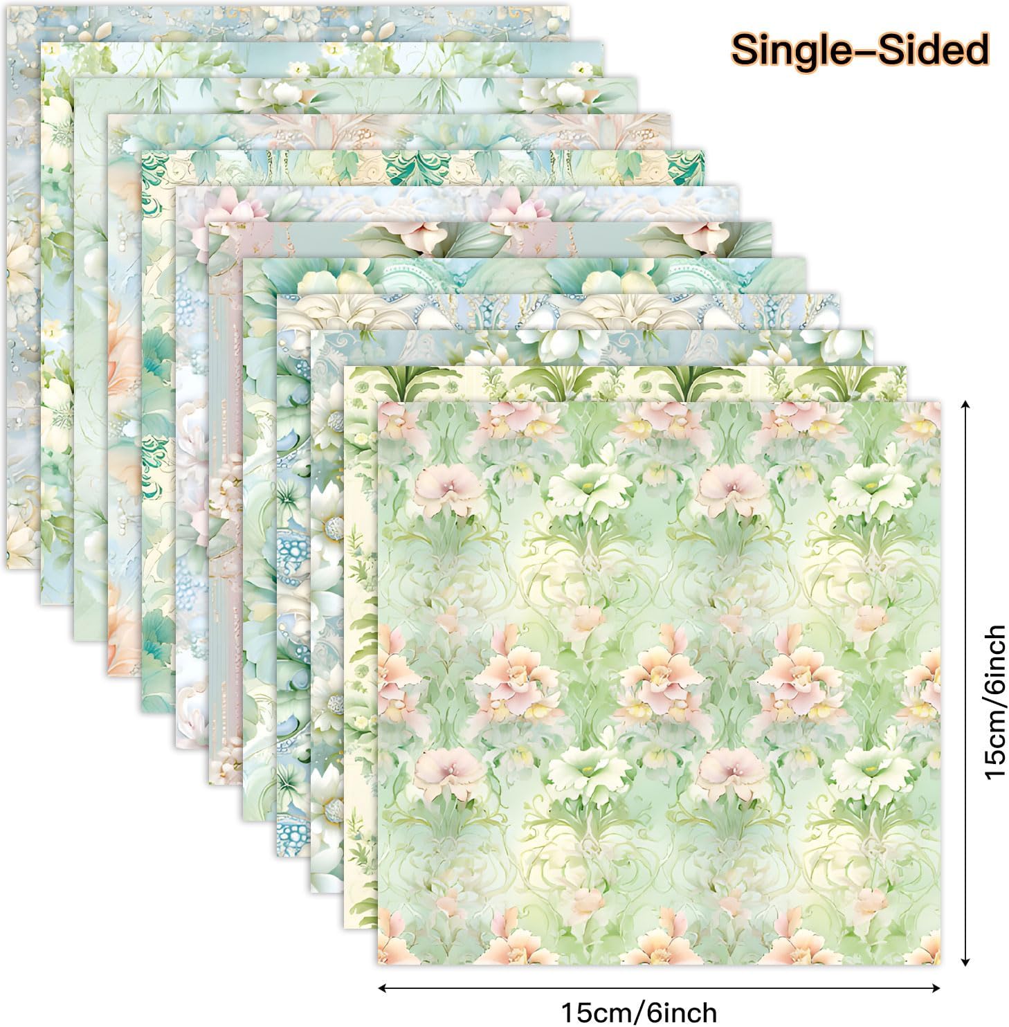 - COLOR &SIZE:This Vintage Green Floral Scrapbook Paper Pack includs 12 different designs,2 sheets for each pattern,total of 24 sheets.Mixcolor.6"*6"/15.2cm*15.2cm Per Sheets.160gsm Wooden free Paper.