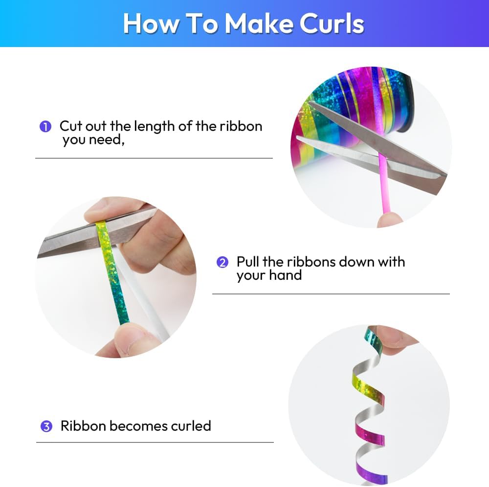 - 【Easy to Customize】Our Shiny Curling Ribbon is easy to cut to the desired length, making it perfect for any application. Whether you're creating a school project or wrapping a gift, our ribbon is versatile and easy to work with.