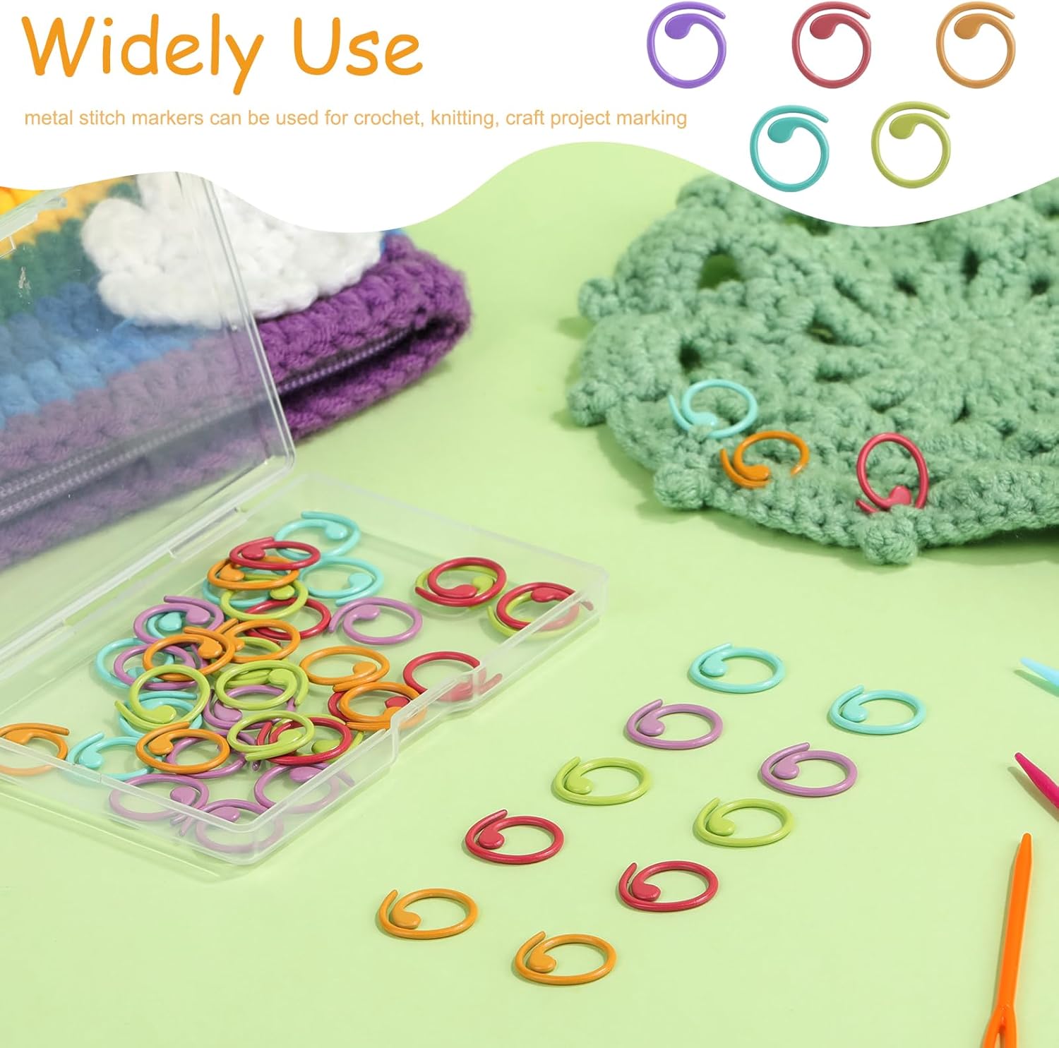 - Thoughtful Design: Our colorful crochet stitch markers adopt a spiral design, different colors are easier to identify and mark, and the bright candy colors can add fun to your crochet work. The plastic needle bottle and transparent storage box can store these tools well to avoid loss, and it is also convenient to carry
