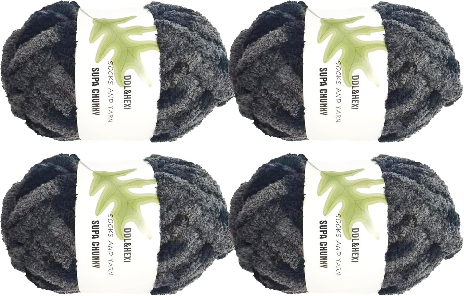 DDL&HEXI 4 Pack Super Chenille Chunky Yarn for Hand Knit, Blanket Making Kit, Jumbo Knitting, 4x8oz (226g) per Bag, Soft Polyester for Crochet, Knitting, and DIY Projects (213-4)