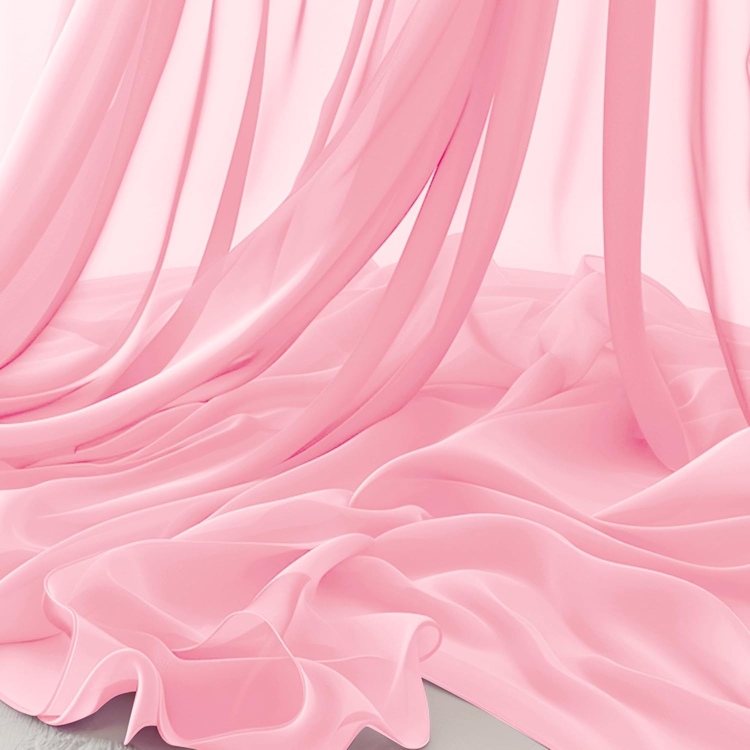 Horbaunal Light Pink Chiffon Fabric by The Yard, 10 Yard Continuous Sheer Fabric 59" Wide Soft Draping Fabric for Wedding Arch Draping Party Backdrop DIY Sewing
