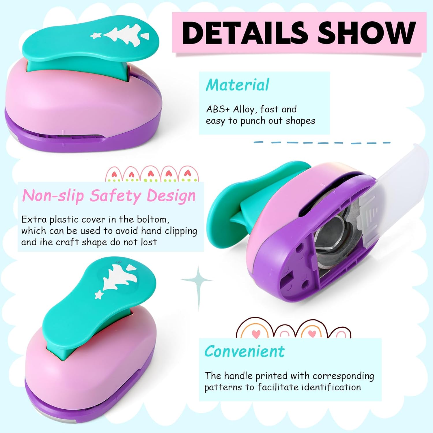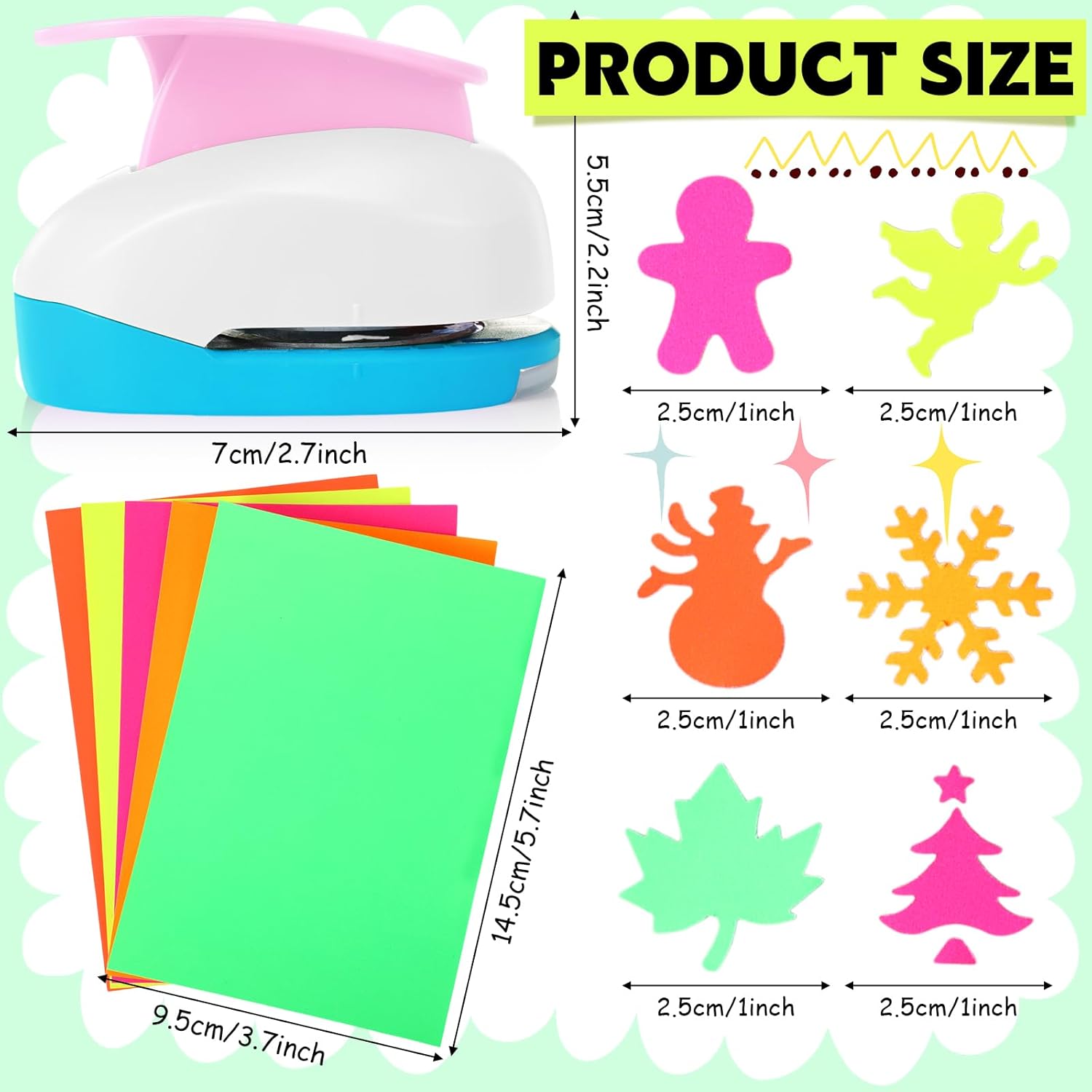 - Quantity: comes with 6 pieces craft paper punchers in 6 different styles and 10 pieces colorful craft sticker paper