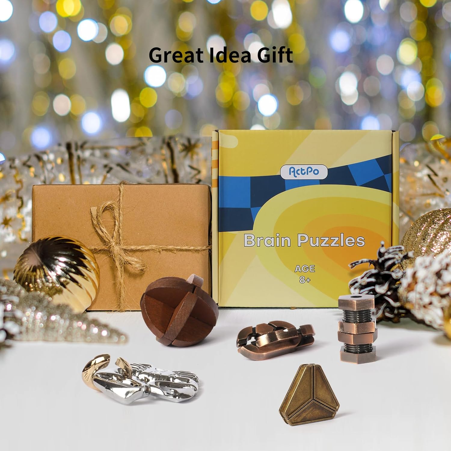 - [BRAIN TEASER PUZZLES ADULTS, TEENS, AND KIDS] Zinc alloy 3D metal puzzles and wooden puzzles are smooth for brain game, puzzles set do not easily bend or break even when thrown or stepped on. Assembly puzzles and disentanglement puzzles are a healthier way to passing time, practice focus and concentration, get them as an IQ test challenge game in limited time, bring lots of Logical fun.
