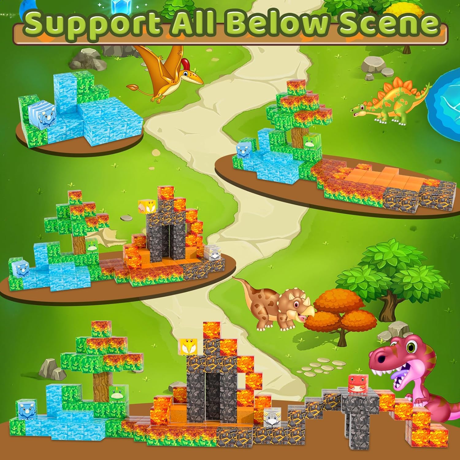 - 【Exciting 3D-World Adventure】Get ready to experience the fun of this magnetic cubes set! With a variety of designs like deserts, forests, blossoms, dinosaurs, rivers, and little monsters, kids can build their own 3D-world and foster creativity and innovative thinking as they explore different combinations and structures. Let's embark on an unforgettable journey!