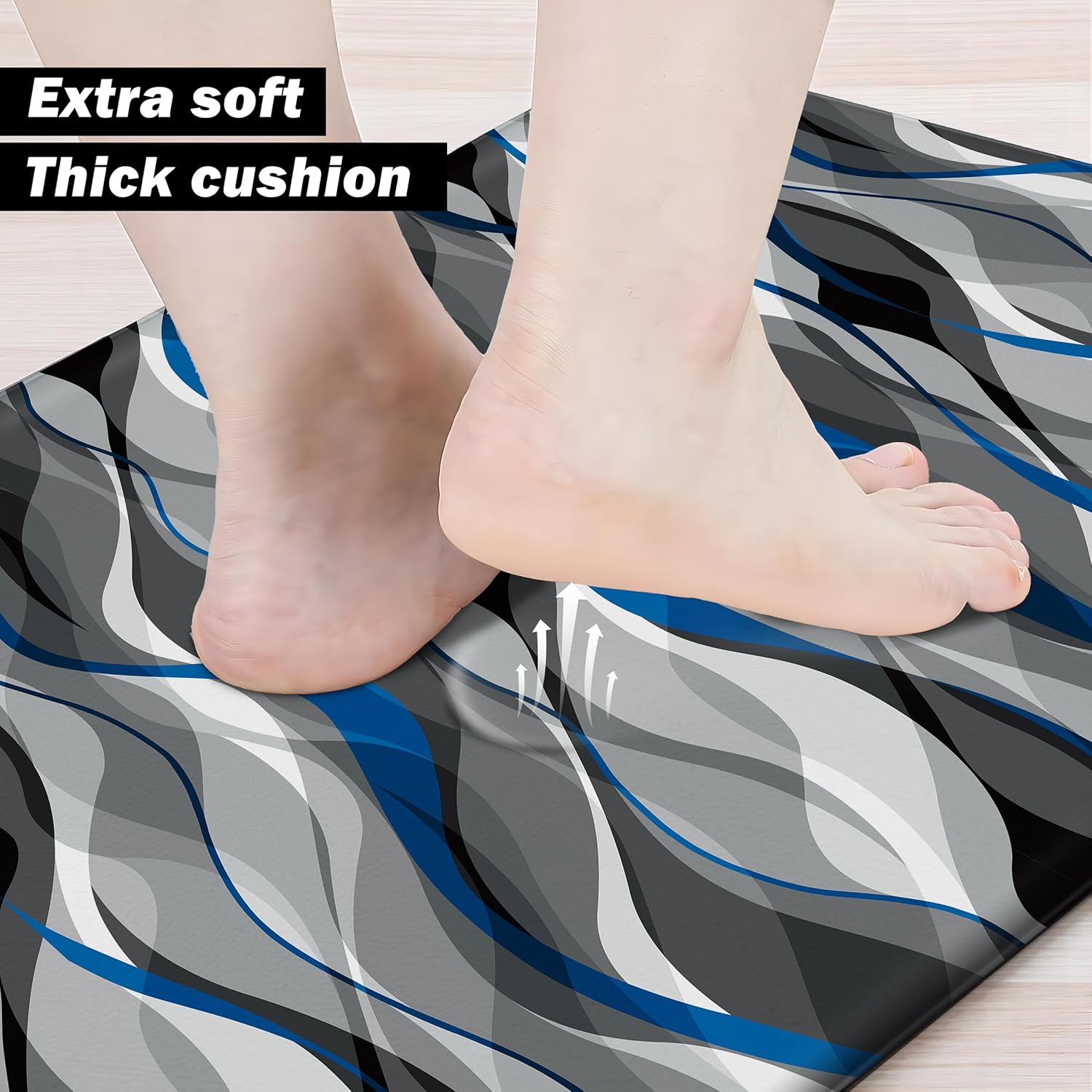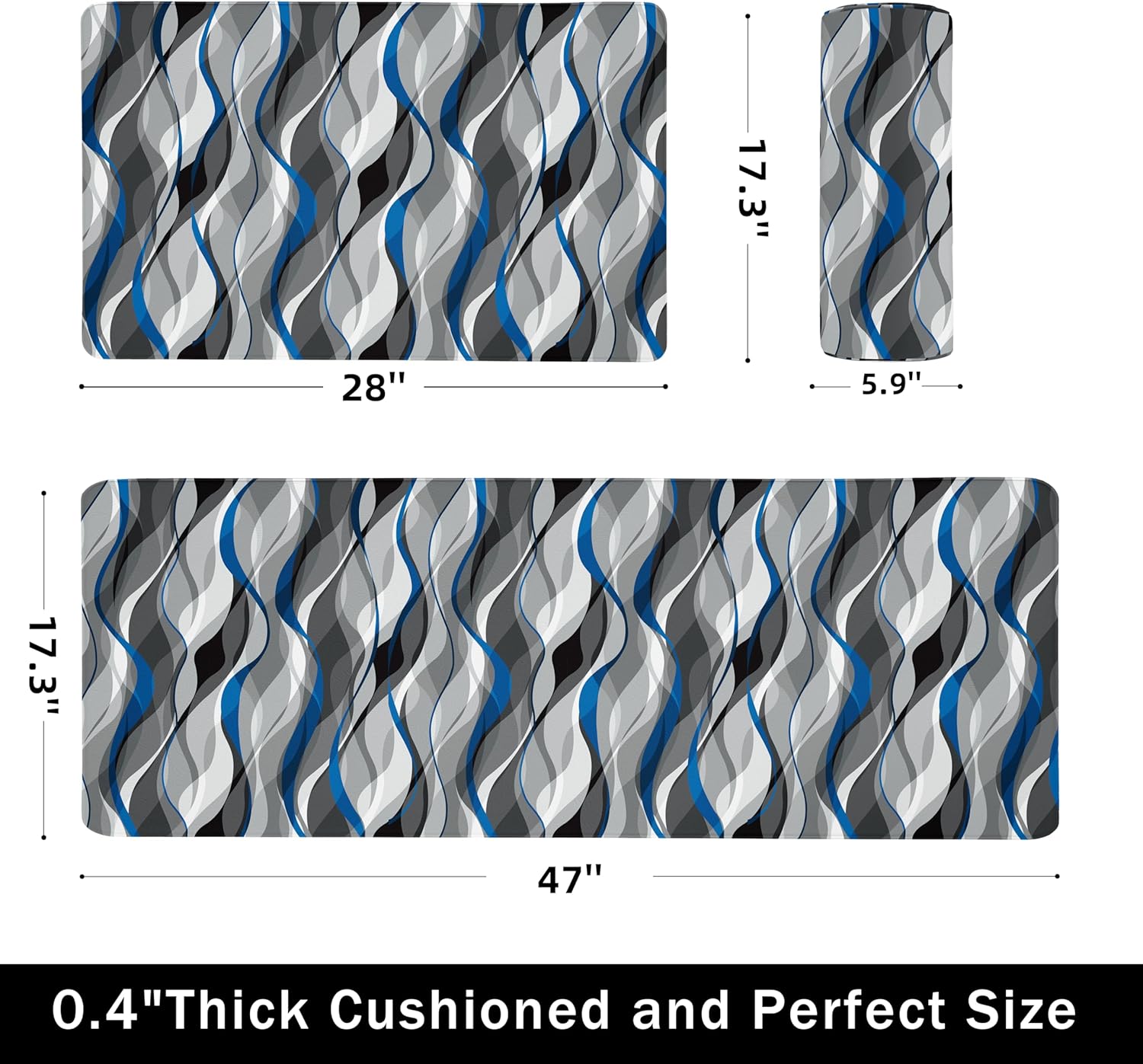Kitchen Mats for Floor Modern Abstract kitchen rugs Grey and Blue Stripe Anti Fatigue Kitchen Mats Waterproof Floor Mats Cushioned Non-Skid Standing Mats for Kitchen, Set of 2,17.3 x 28+17.3 x 47