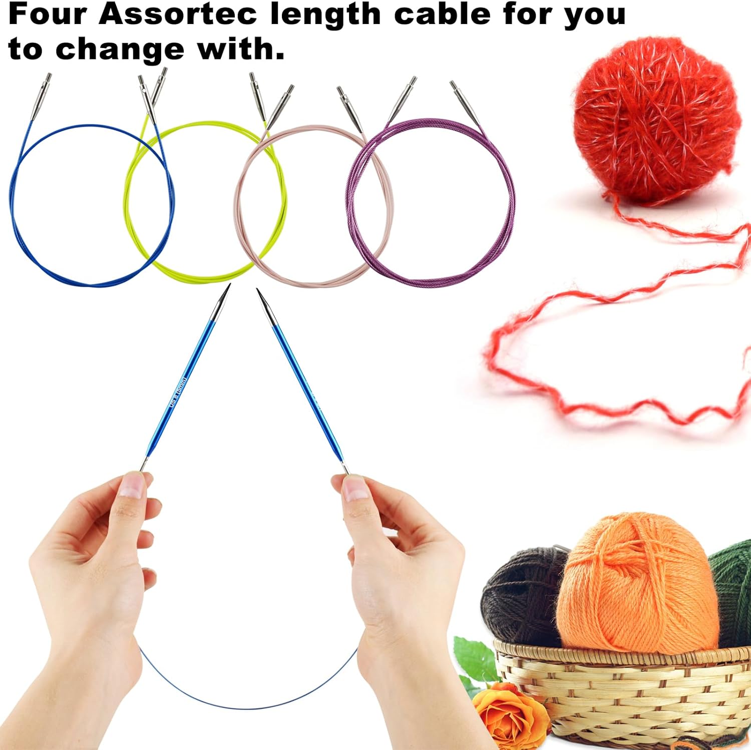 - 【4 Cable Lengths for Versatile Projects】: Comes with cables in 16", 24", 36", and 40" sizes,each size in a different color for easy recognition, making these changeable circular knitting needles suitable for creating a variety of items like hats, scarves, and blankets.