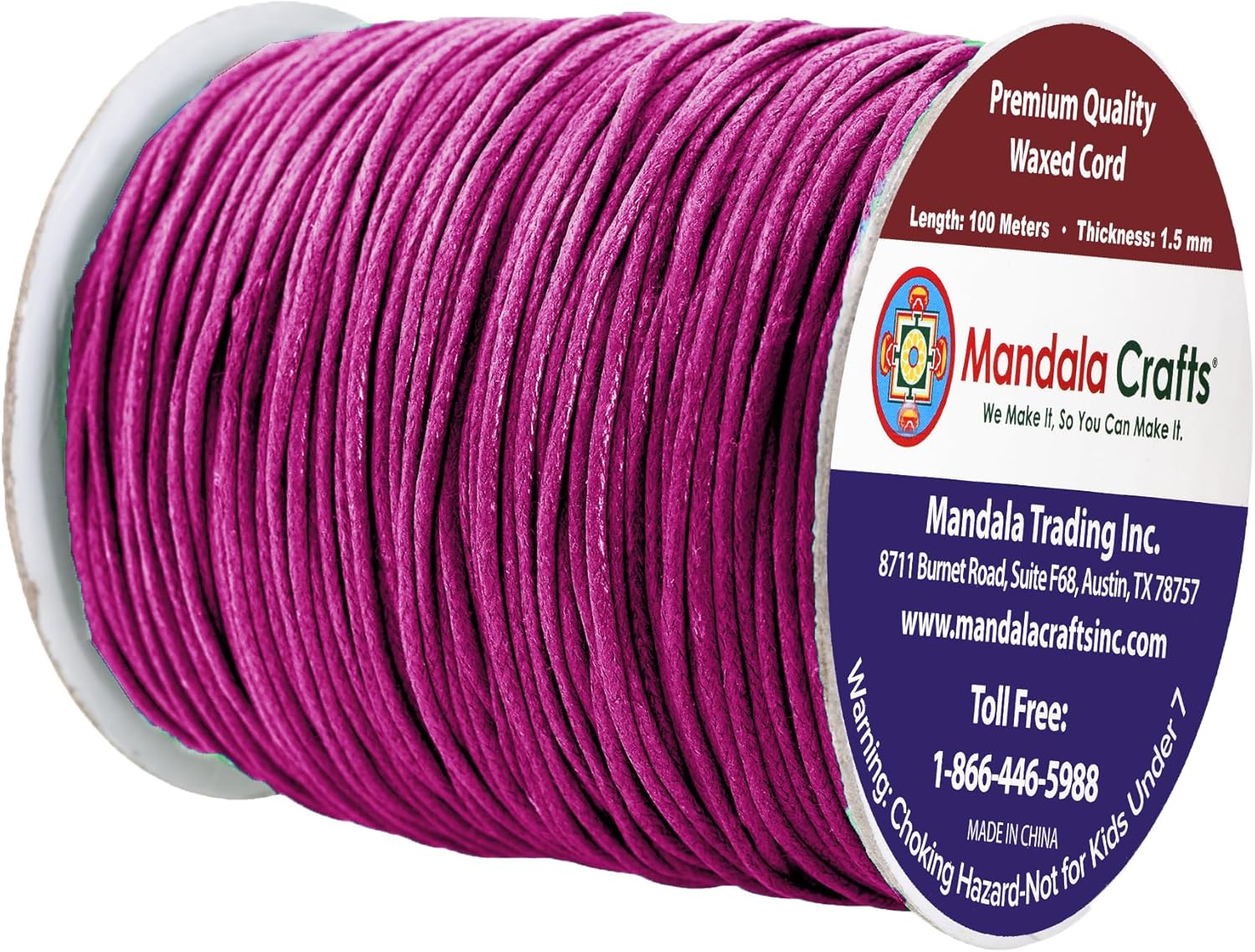 - Bulk Dark Violet Waxed Cord Roll: The non elastic colorfast 1.5mm cotton cord with heat treatable ends is fraying resistant & bleed free. The continuous 3 ply 109 yds long 1.5mm jewelry waxed cord made from 100 percent cotton is easy to cut, tie, knot, or glue.