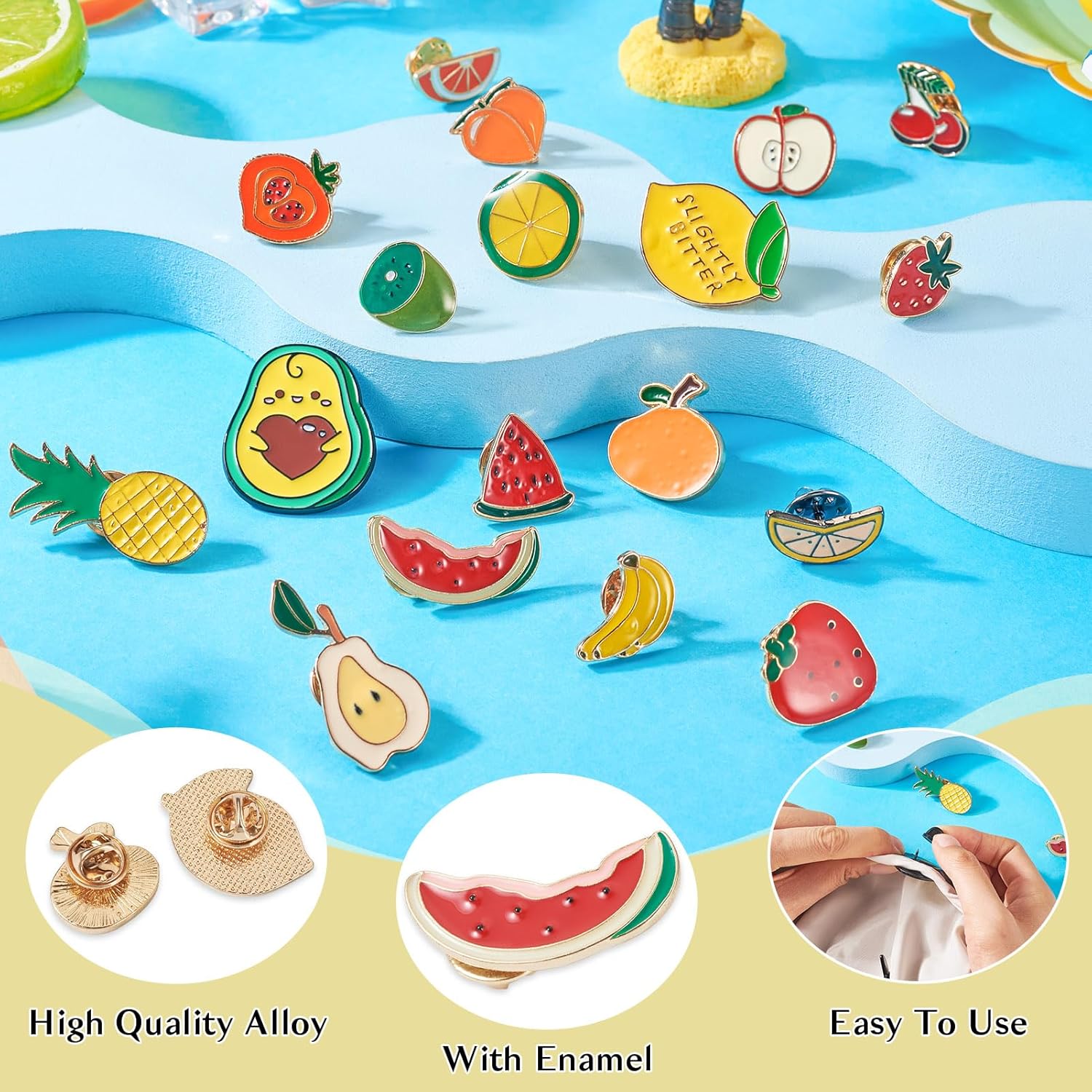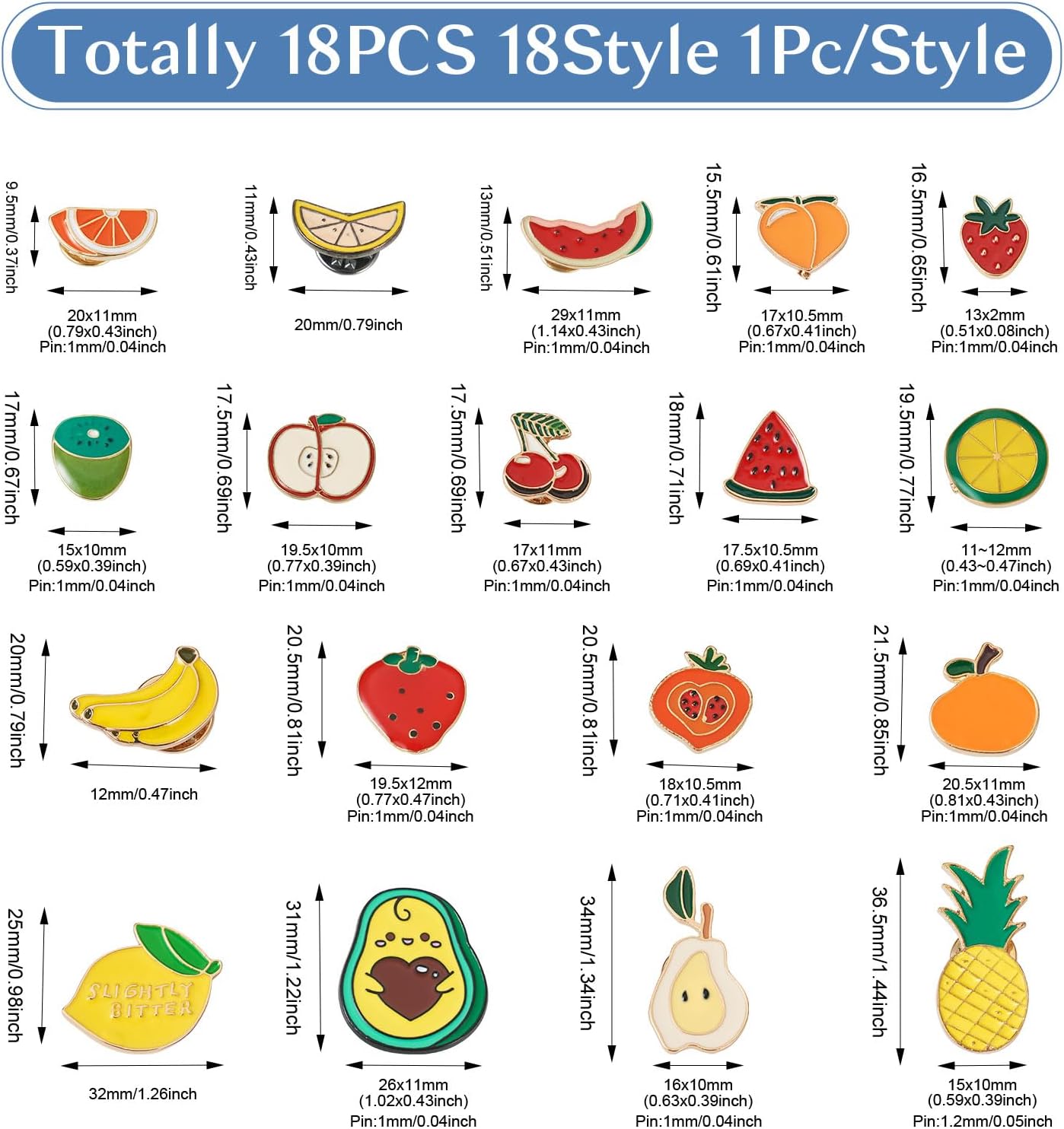 - What You Will Receive: 17pcs cute fruits enamel brooch pins, each pattern is artistically designs, the pins will make your clothing and backpacks more attractive and special.