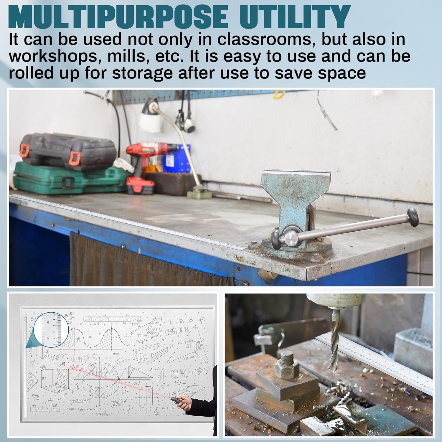 - Multipurpose Utility: the magnetic ruler exhibits versatility, making it a valuable tool for workbenches, large whiteboards, drawing tables, tear fences, craft tables, T tracks or other places; Also, its easy roll up design makes them storage friendly