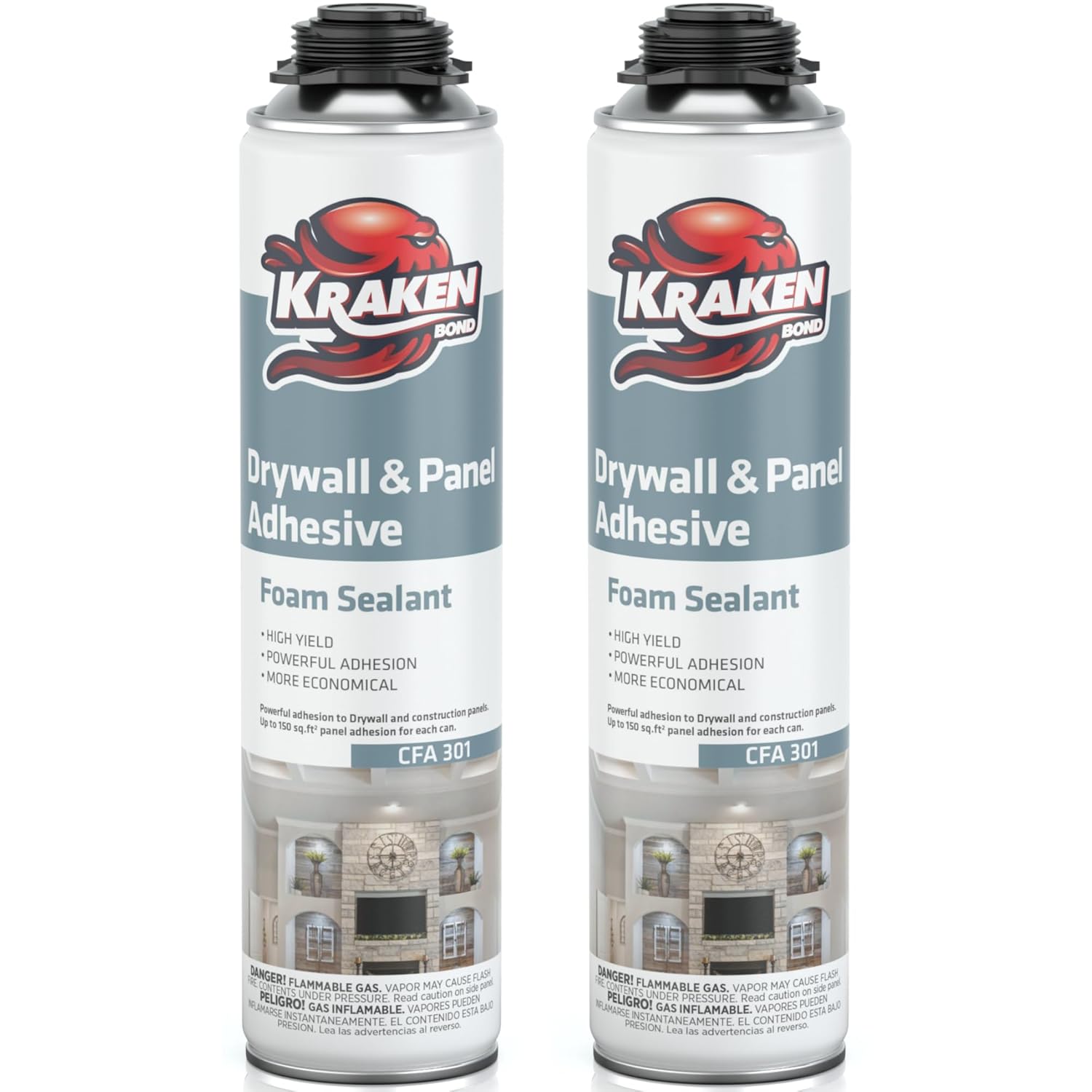 KRAKEN BOND Drywall & Panel Adhesive Foam - (2X24oz) Heavy-Duty, Fast-Curing Construction Adhesive for Concrete, Wood, and Heat Insulation Applications - 2 Pack