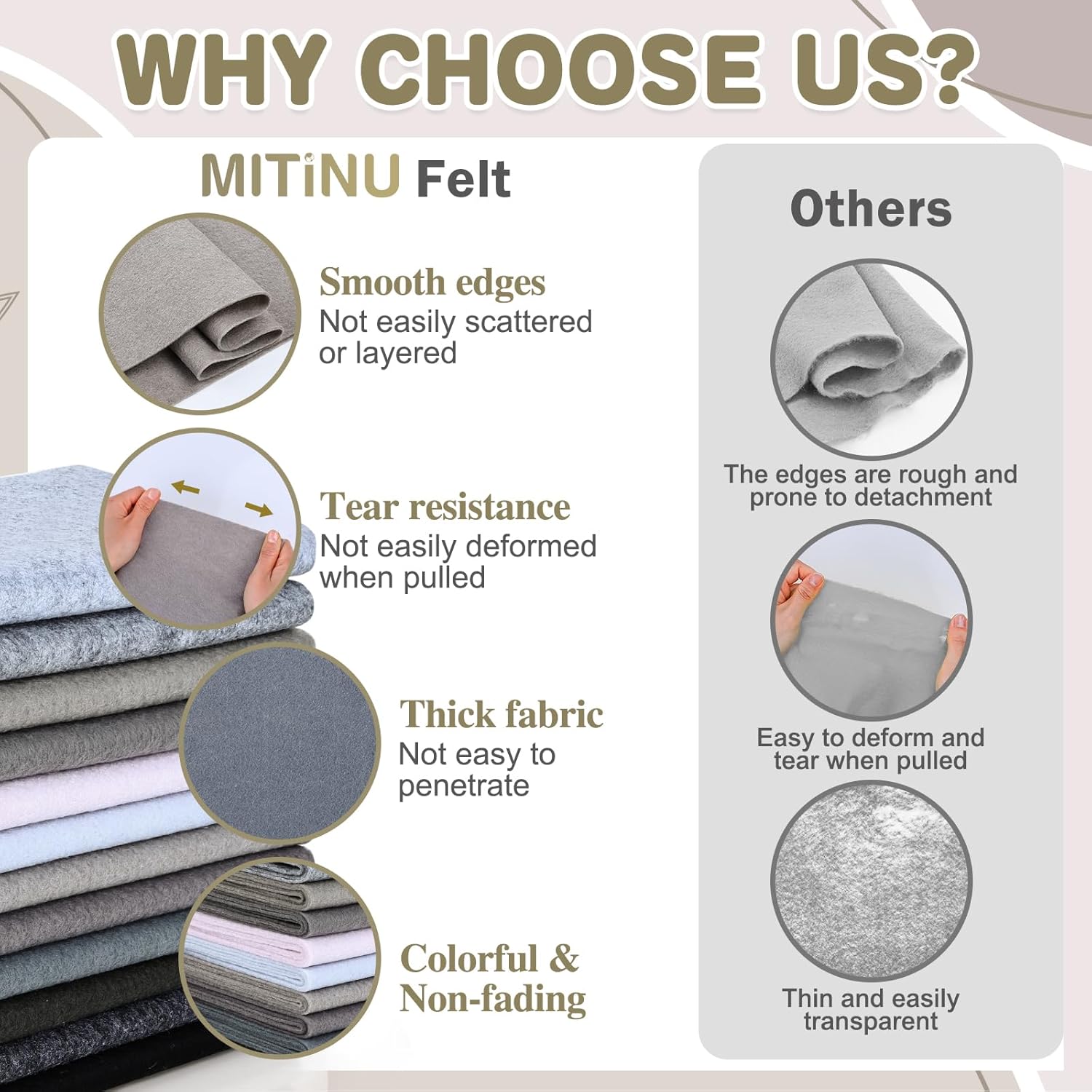 - 【High Quality】:Crafted from high-quality raw materials, this felt boasts a dense texture, exceptional durability, and resistance to deformation. Its smooth surface, fray-resistant edges, and plush softness ensure effortless cutting and sewing, while every detail reflects our rigorous commitment to quality.