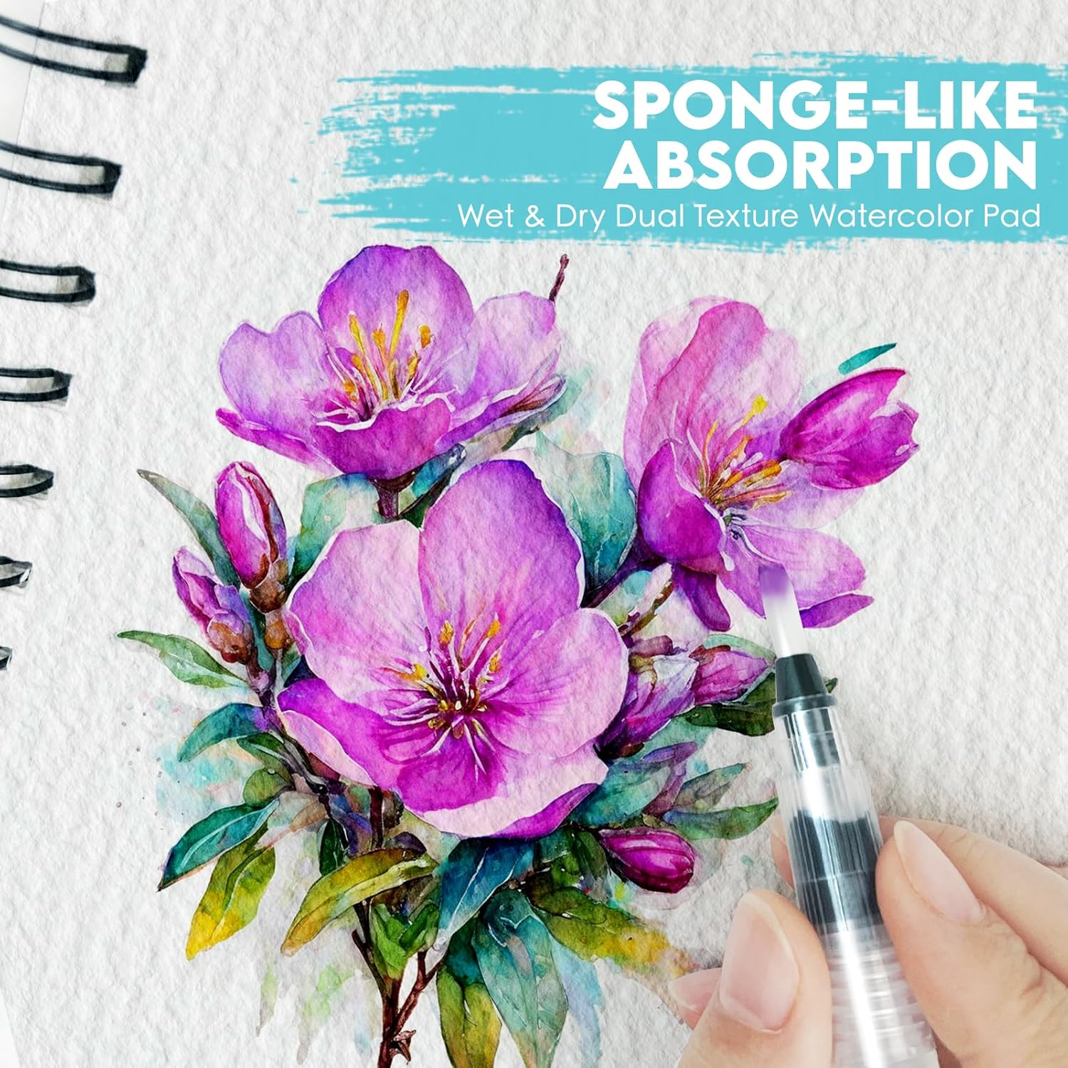 - Premium 100% Cotton Watercolor Paper – 140lb/300gsm acid-free, cold-press texture ensures vibrant color absorption, minimal warping, and long-lasting artwork.Ideal for watercolor, ink, and gouache.