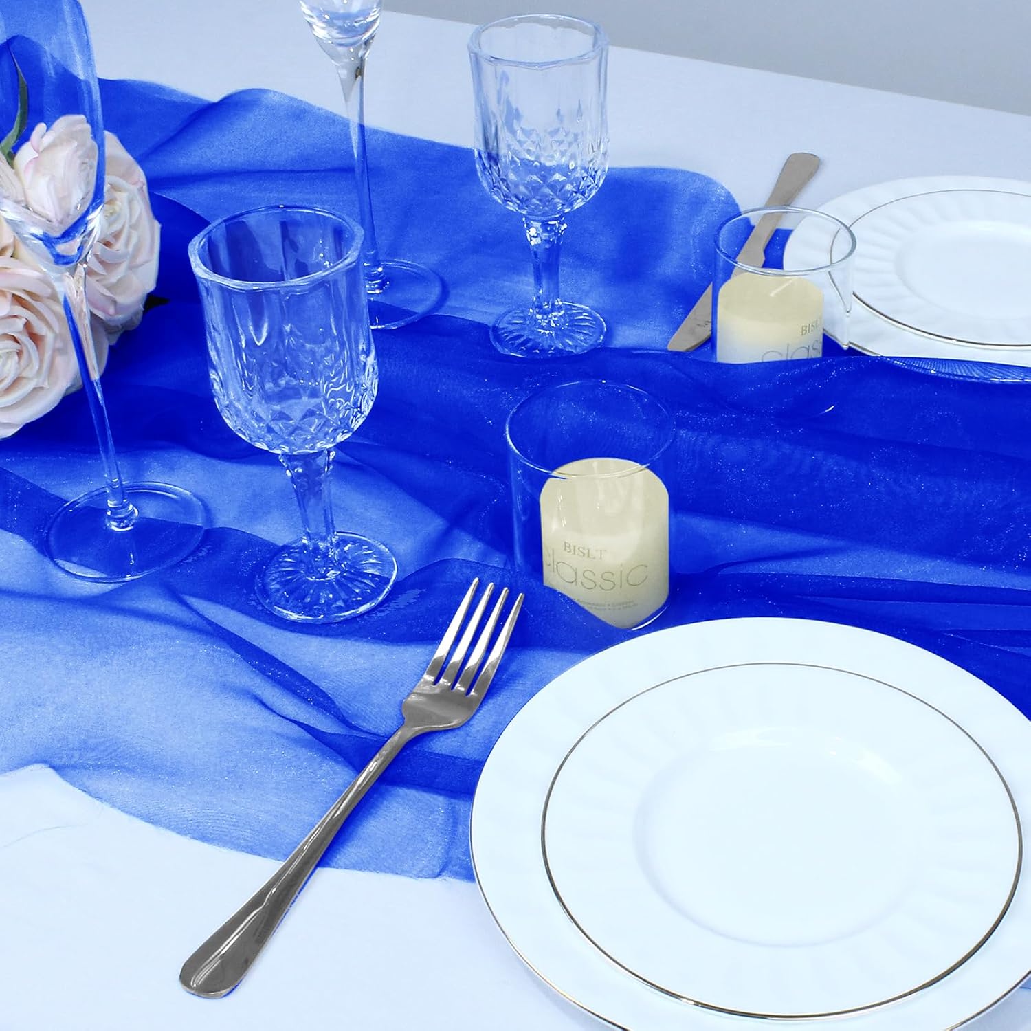 VACVELT Sheer Organza Fabric by The Yard, 60 Inch Wide Royal Blue Organza Fabric Bolt Bridal Sheer Tulle Fabric, Silk Organza Fabric Roll for Wedding Party Decorations Backdrop Curtain (2 Yards)