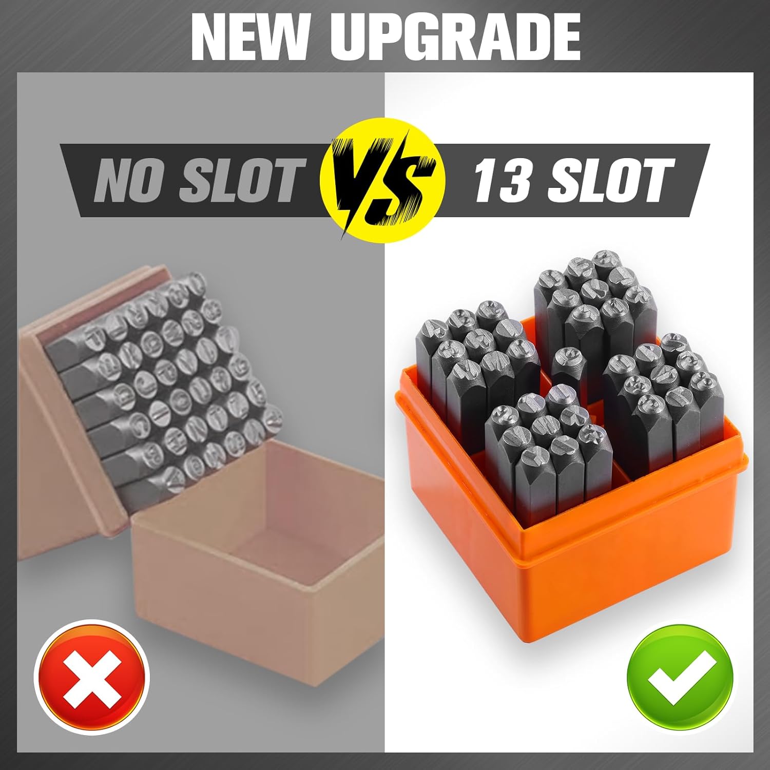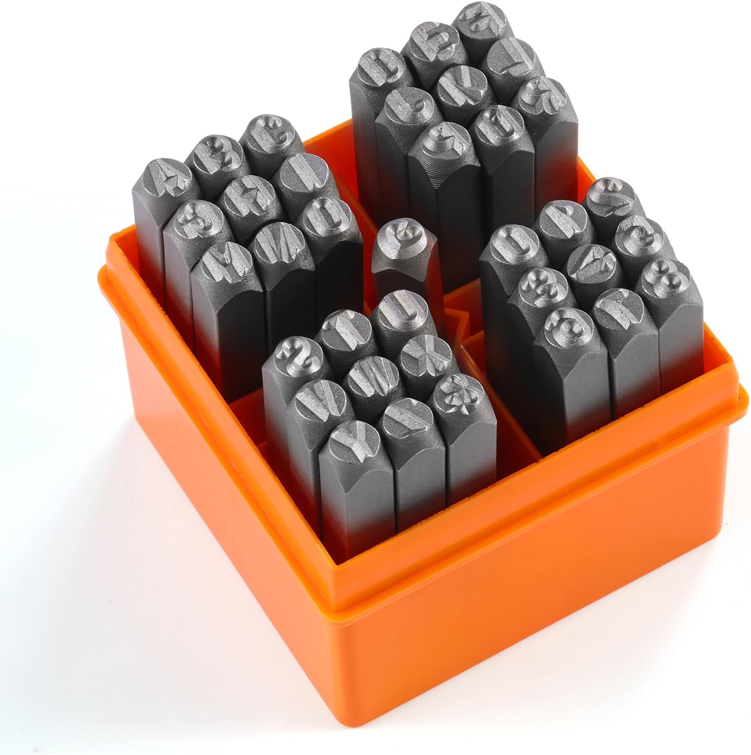 - QUALITY MATERIAL:Letter punch set is forged from high carbon steel,high hardness,not easy to break.Differentially heat treated for optimal performance and durability