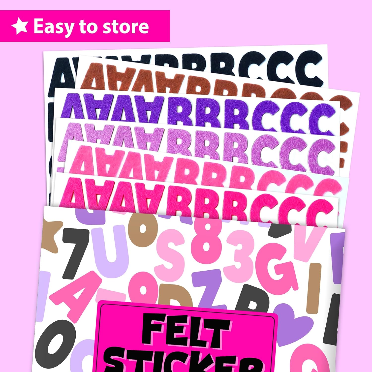 - 🔟 500+ assorted felt stickers 🔟 : Over 500 assorted felt self adhesive stickers are included, with wide variety of girly colors and shapes. Alphabets, numbers and other fun patterns and shapes.