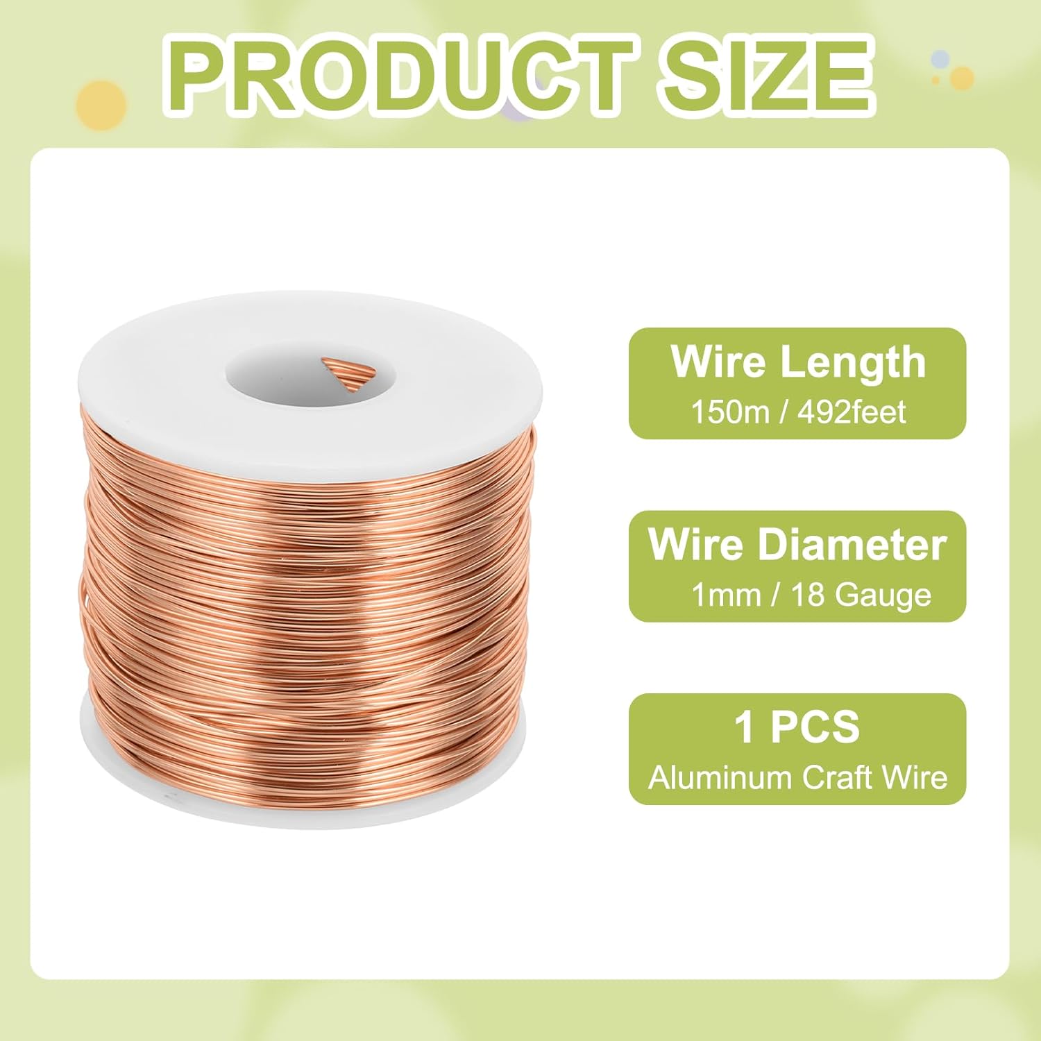 - Package contains 1pcs x Aluminum Craft Wire, wire diameter: 18 Gauge (1mm), wire length: 492 Feet (150m)