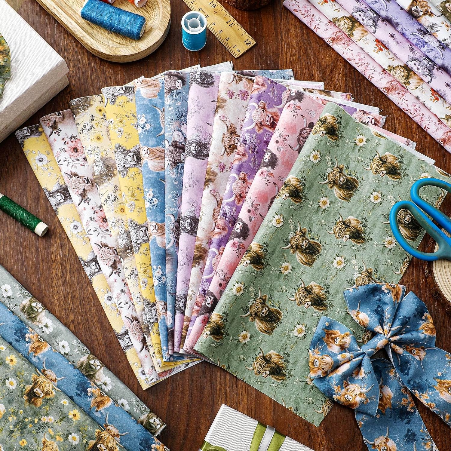 - Vibrant and Diverse Quilting Fabrics: presented in a package of 60 pieces, these magnificent highland cowfabrics offer an array of patterns to choose from, such as highland cow and sunflower; Our quilting fabric measures around 10 x 10 inches/ 25.4 x 25.4 cm, providing ample space for your most creative projects