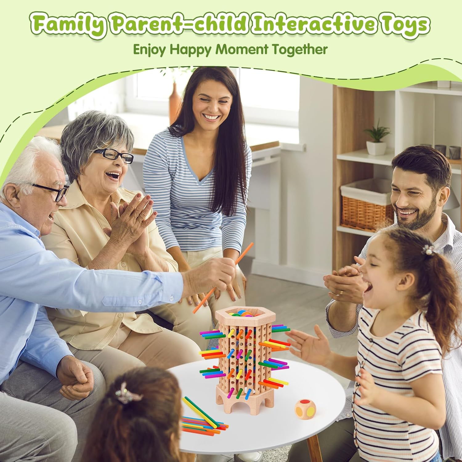 - HEXAGONAL DESIGN, SIMPLE AND FUN BOARD GAME:The unique hexagonal tower design allows for stick insertion from multiple angles and heights, creating creative challenges. Players insert sticks, place a ball on top, and then take turns rolling the dice. Remove sticks of the same color without dropping the ball! The player with the fewest dropped balls wins. The simple gameplay makes this a highly interactive family board game, allowing children to develop skills while having fun with friends.