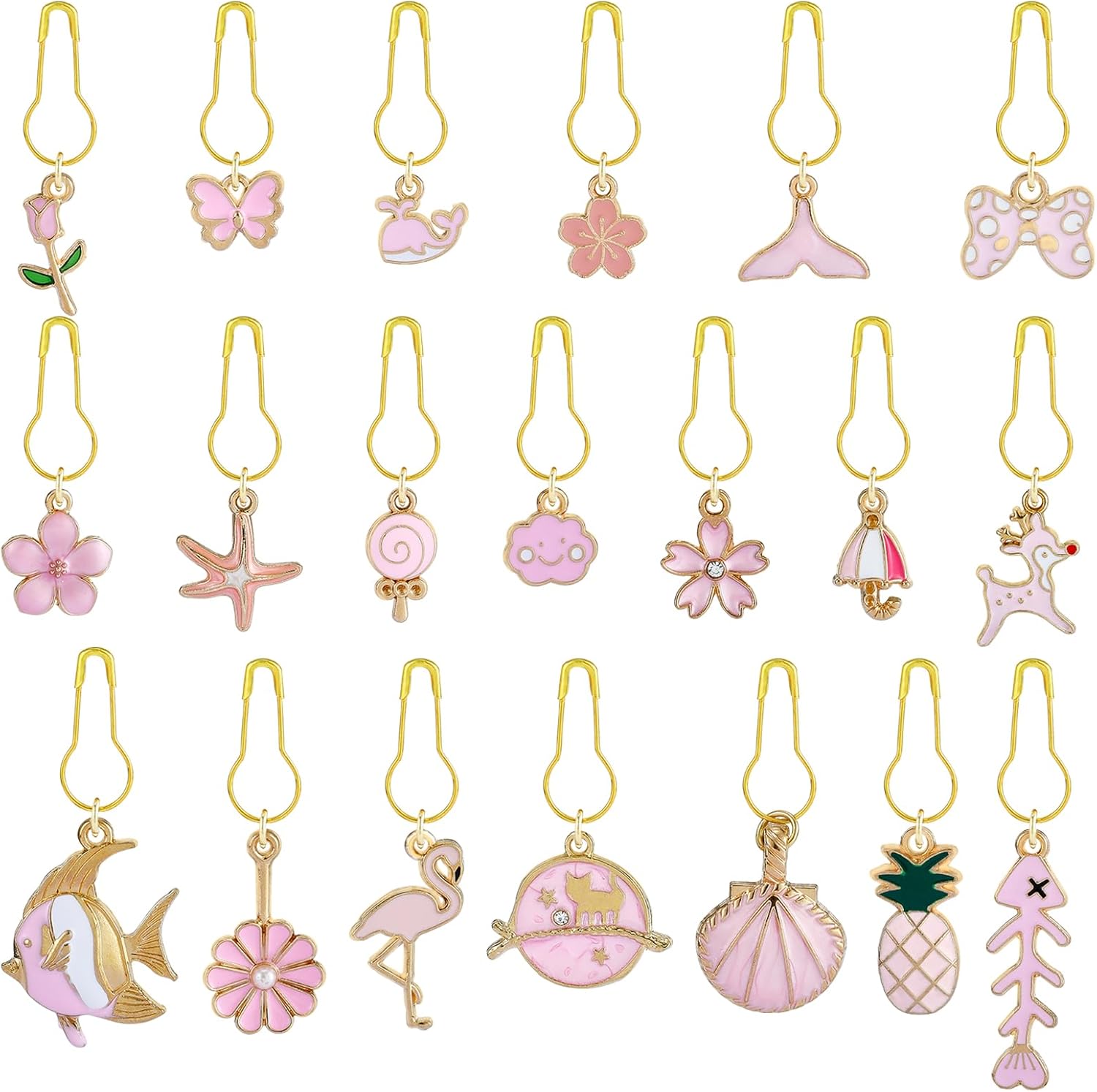 BEEFLYING 20Pcs Cute Mixed Pink Stitch Markers, Alloy Enamel Knitting Stitch Marker Charms Pendants for Sewing Crocheting and Knitting