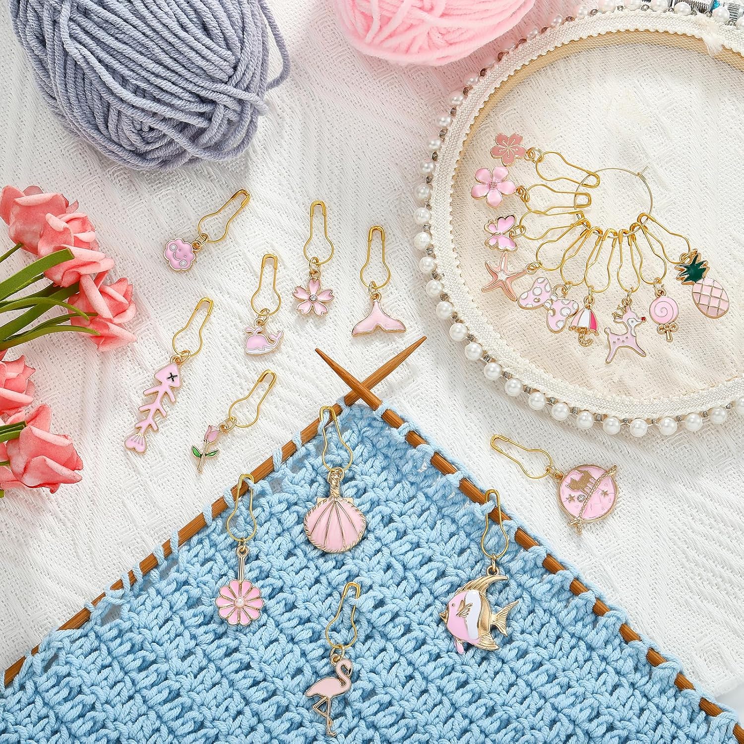 - Knitting Removable Markers:The removable knitting stitch markers are helpful for sewing, weaving and knitting etc. With the clasp charms design, they are easy to clip on and removable. You just need to clip the charms on knitting wool to mark it.