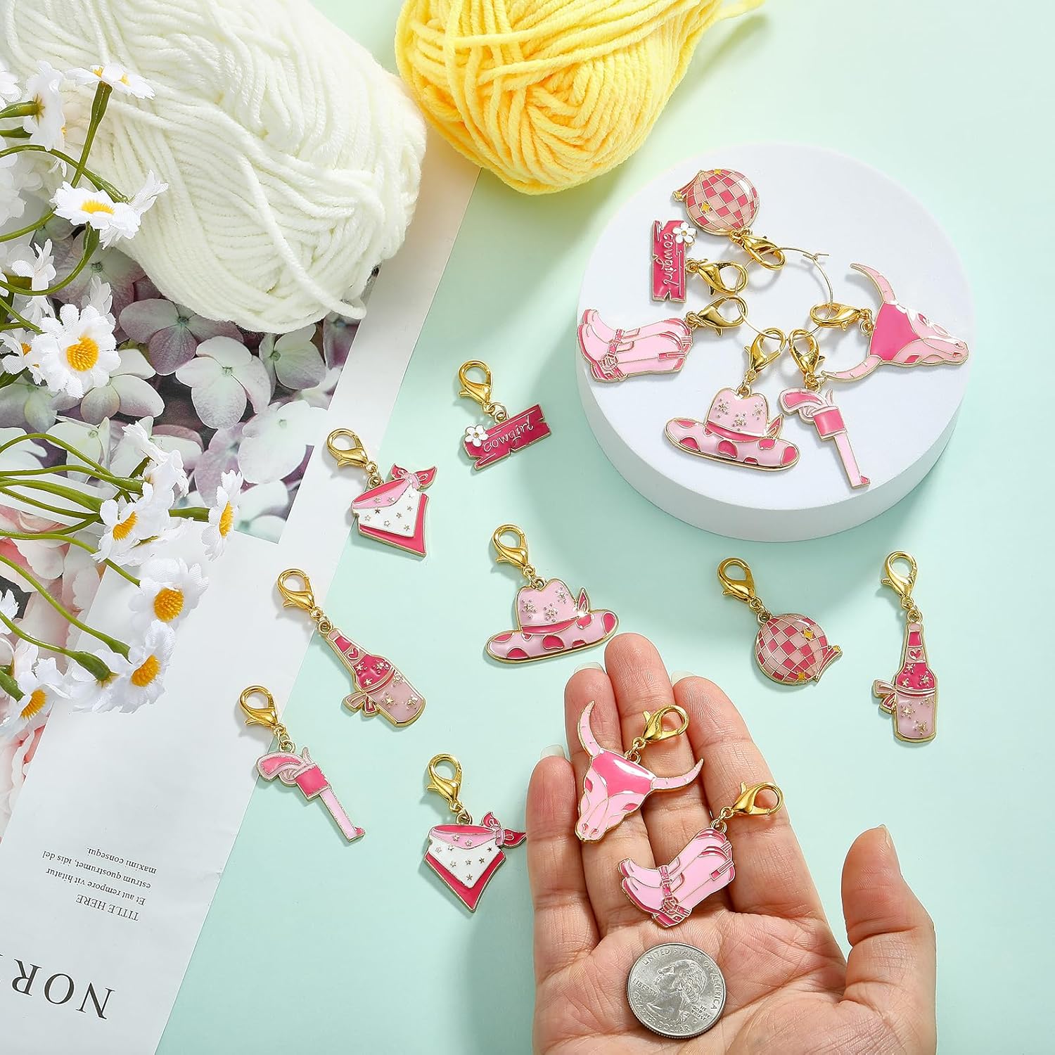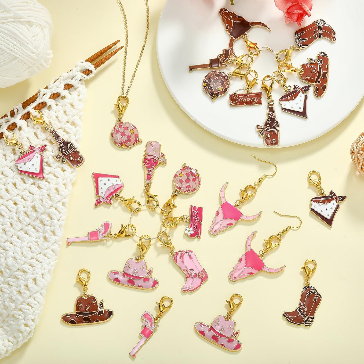 - Cowgirl Stitch Markers: Each of these knitting markers has its own sparkling personality,and the bright colors with vivid shapes can easily help you organize and distinguish different locations of crochet stitches, providing convenience and a variety of options for your DIY knitting craft projects