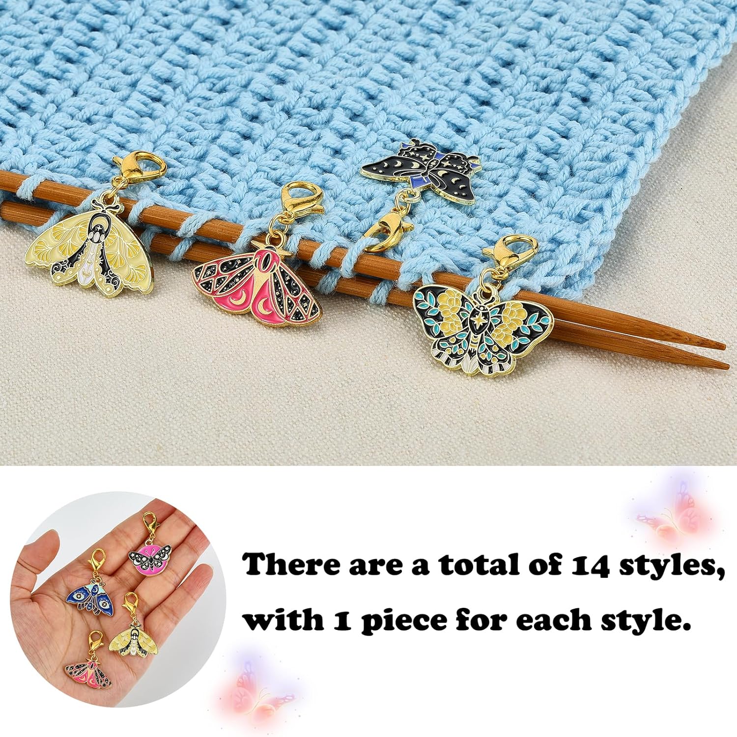 - Large Quantity: You will receive 16 styles lovely enamel butterfly crochet stitch markers, the diverse designs make it easy for you to distinguish the different parts when knitting or sewing