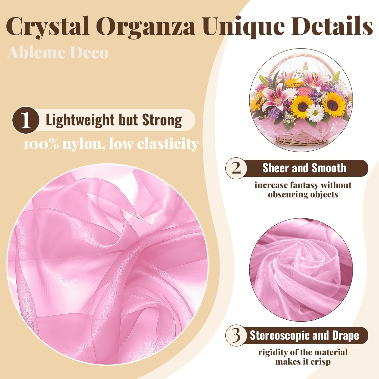 Sheer Fabric 60" x 1 Yards (3 ft) Organza Fabric by The Yard for DIY Wedding Decorations Craft Projects Party Backdrops Bows (Lt Pink)