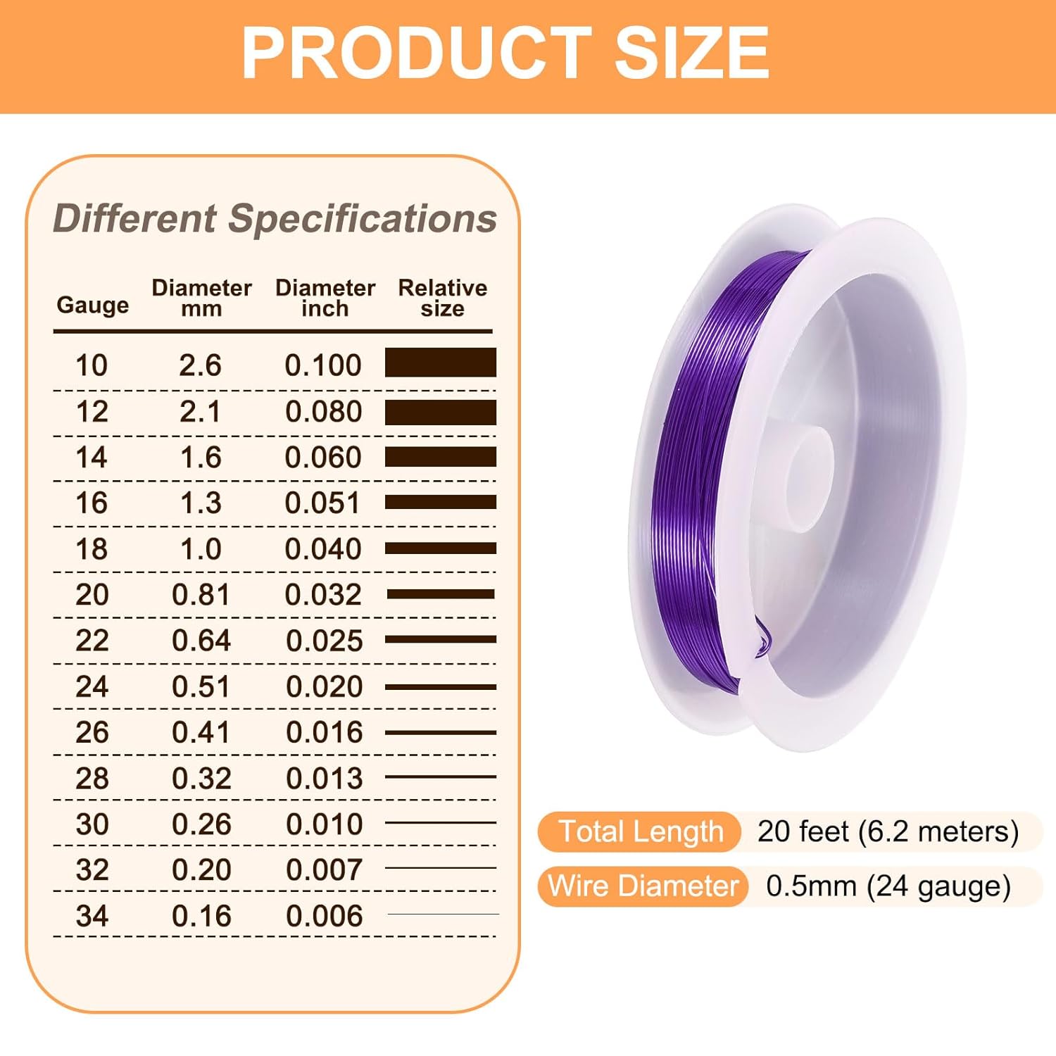 - Size - The diameter of the art wire is about 0.5mm (24 gauge) and 20 feet (6.2 meters) long. The art wire is suitable for jewelry making, beading, and jewelry repair.