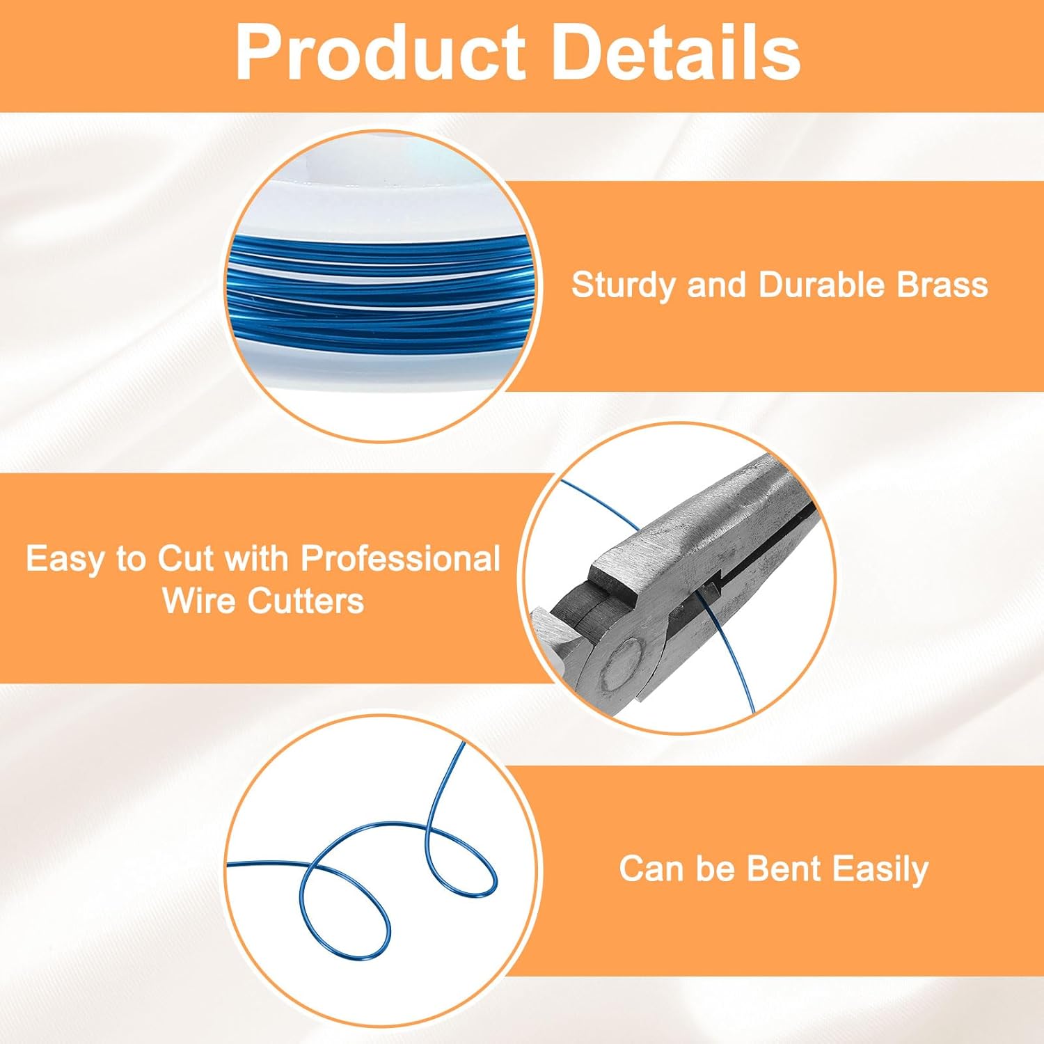 HARFINGTON 8ft Jewelry Wire, 20 Gauge (0.8mm) Brass Craft Soft Metal Tarnish Resistant Copper Beading Wire for Jewelry Making Supplies Crafting, Blue