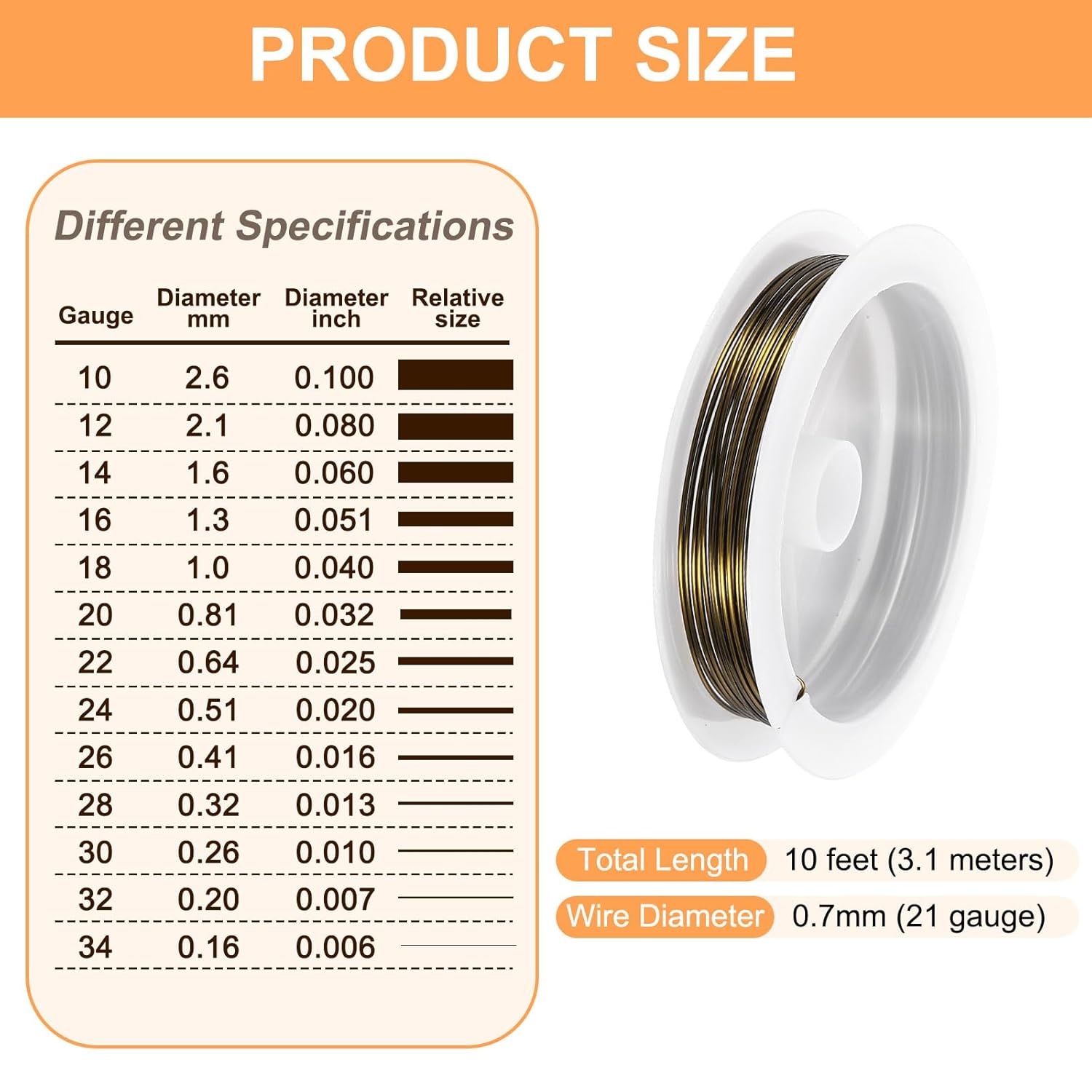 - Size - The diameter of the art wire is about 0.7mm (21 gauge) and 10 feet (3.1 meters) long. The art wire is suitable for jewelry making, beading, and jewelry repair.