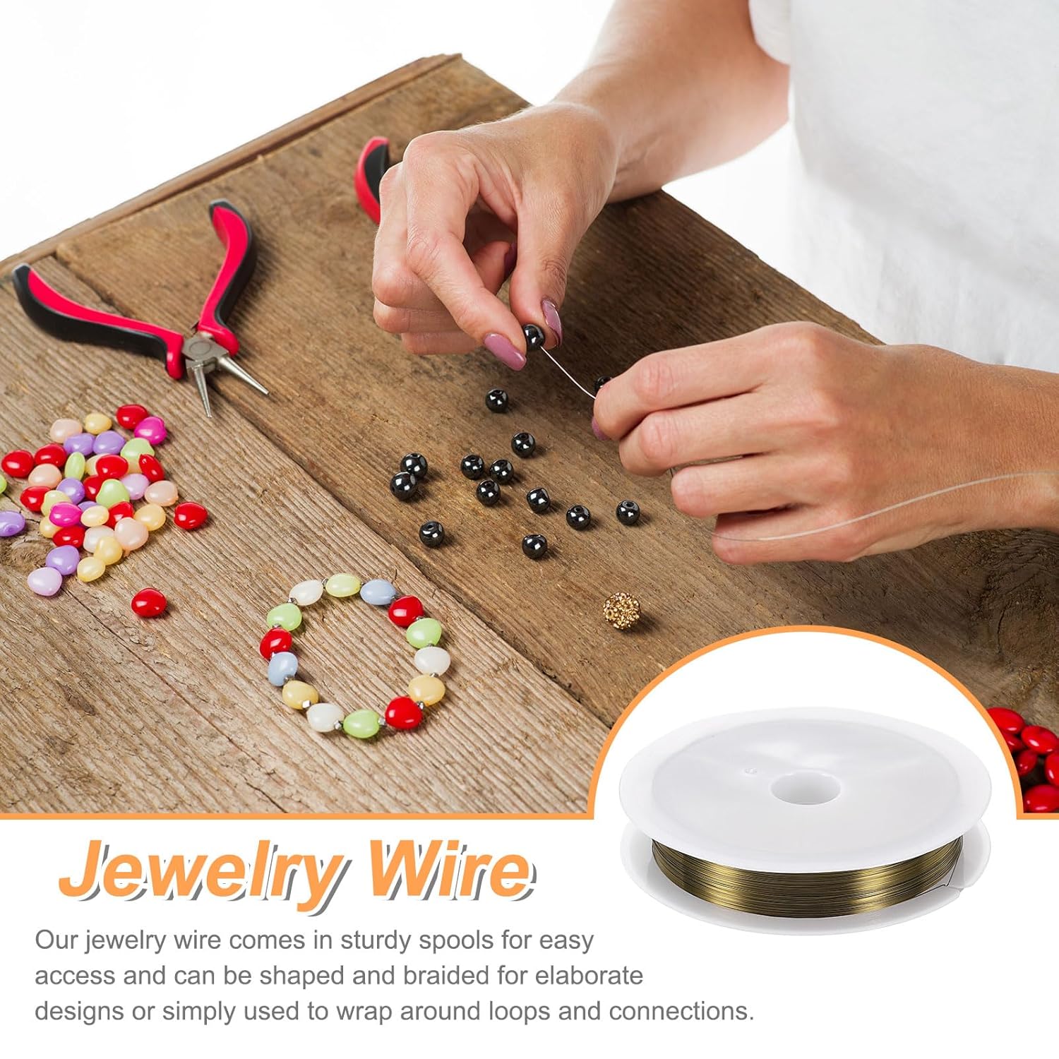 - Features - The jewelry wire is bendable and flexible, easy to use, and can be used with different types of beads, necklaces, bracelets, and other jewelry DIY projects. In addition, it is packaged in a sturdy spool, which is convenient to take out the metal craft wire and keep it neat and not messy.