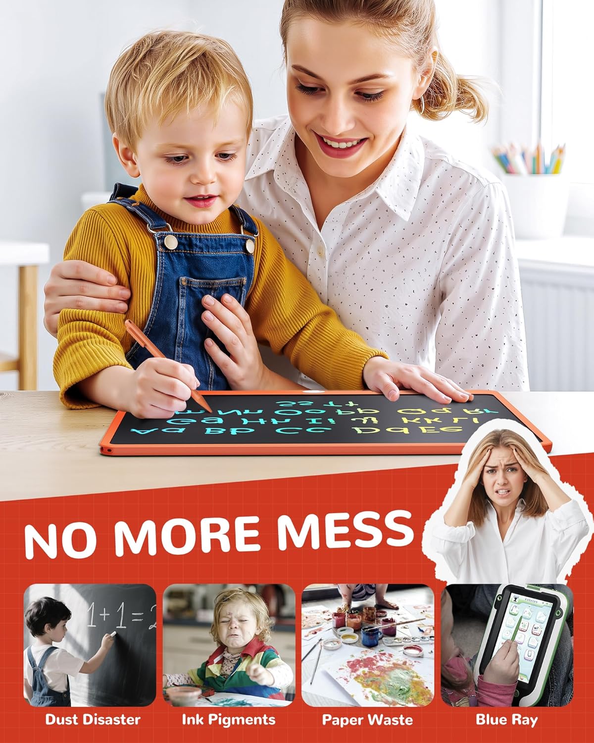 KOKODI LCD Writing Tablet, 16 Inch Colorful Toddler Doodle Board Drawing Tablet, Erasable Reusable Electronic Drawing Pads, Educational and Learning Toy for 3-6 Years Old Boy and Girls(Orange)
