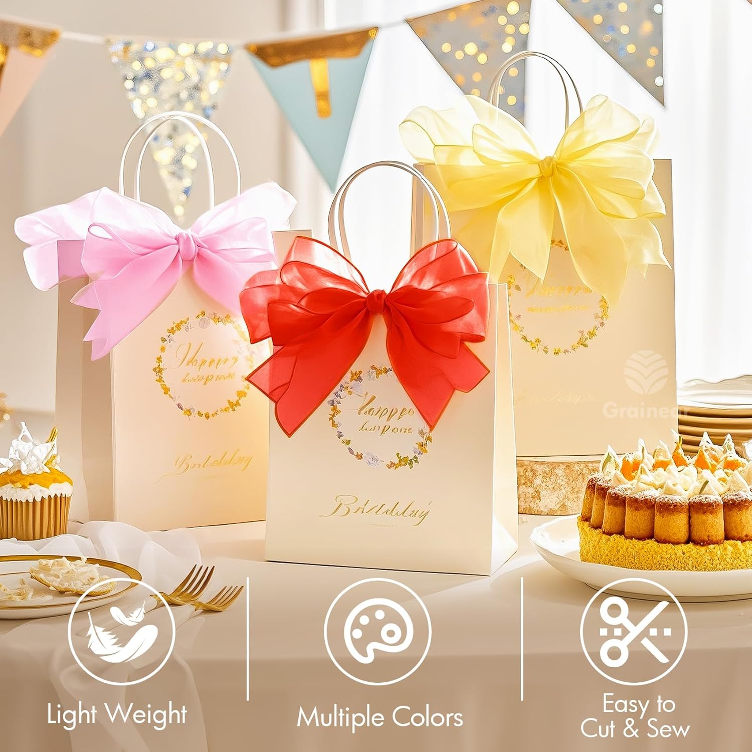 - Elegant & Sheer Finish: Lightweight organza with a subtle shimmer and translucent appearance — adds a refined, elegant touch to any DIY project or event décor