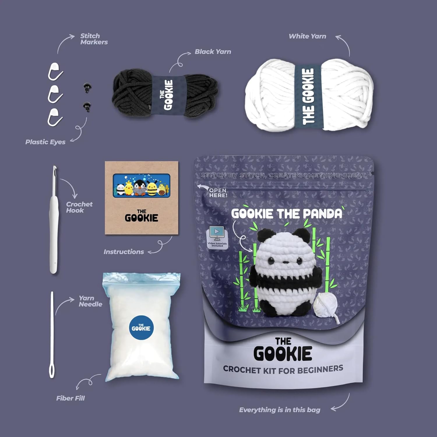 THE GOOKIE Amigurumi Crochet Kit for Beginners β DIY Crochet Kit with Yarn, Hook, Eyes & Stuffing β Easy Starter Set with Video Tutorials β Cute Plush Toy Craft Gift for Kids, Teens & Adults (Panda)