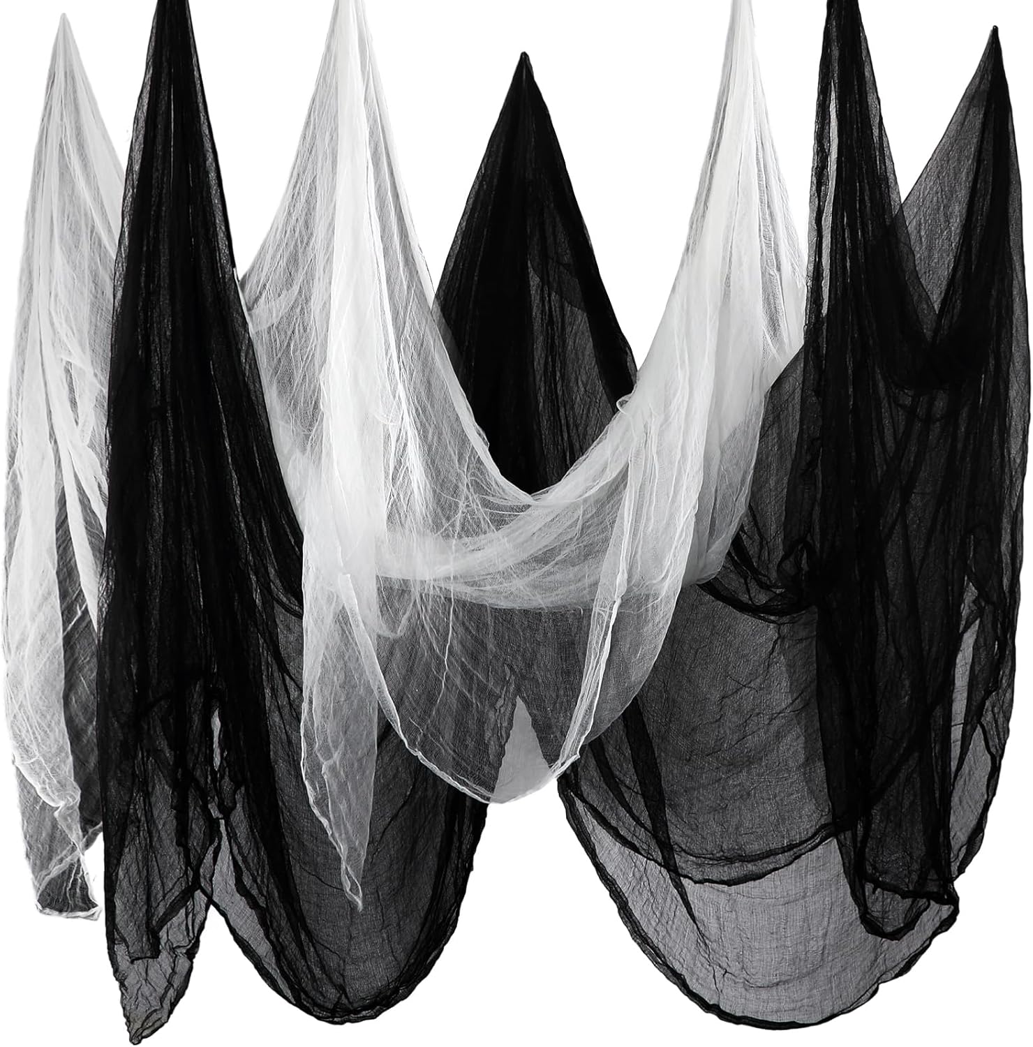 Boao Halloween Cheese cloth 84.65 x 295.28 Inch White Black Cheesecloth Roll for Crafts Large Cotton Muslin Gauze Fabric for Halloween Outdoor & Indoor Spooky Decoration