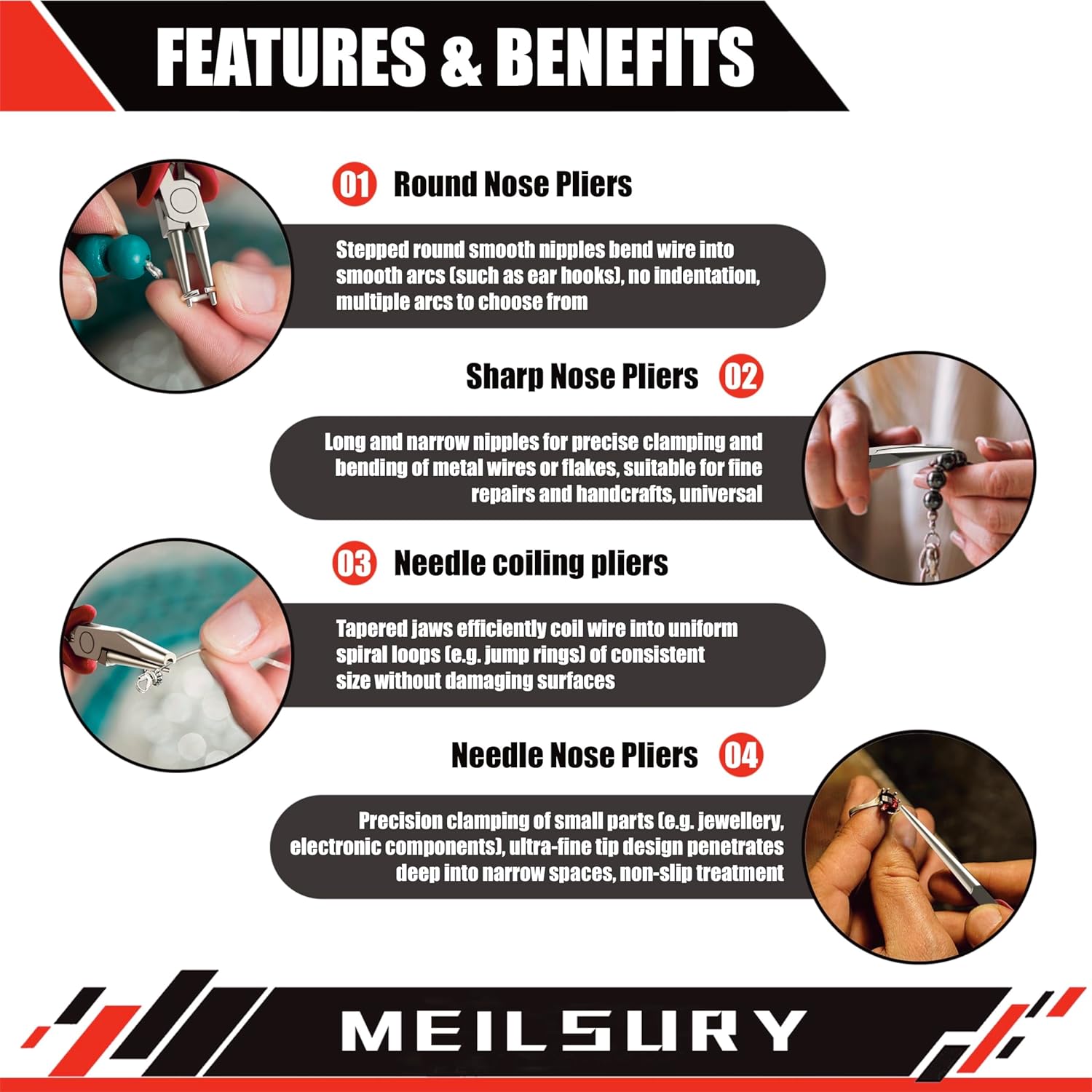 - Multi-functional combination:This jewelry pliers tool set is great for both beginners and pros. It can support different jewelry-making techniques, has a wide range of uses, and can meet all the needs for making and fixing all kinds of jewelry and DIY projects. For example, it can be used for jewelry repair, beading, making earrings, bracelets or necklaces, keychain making, as jewelry making supplies for other DIY crafts, and even for electronics project jobs.