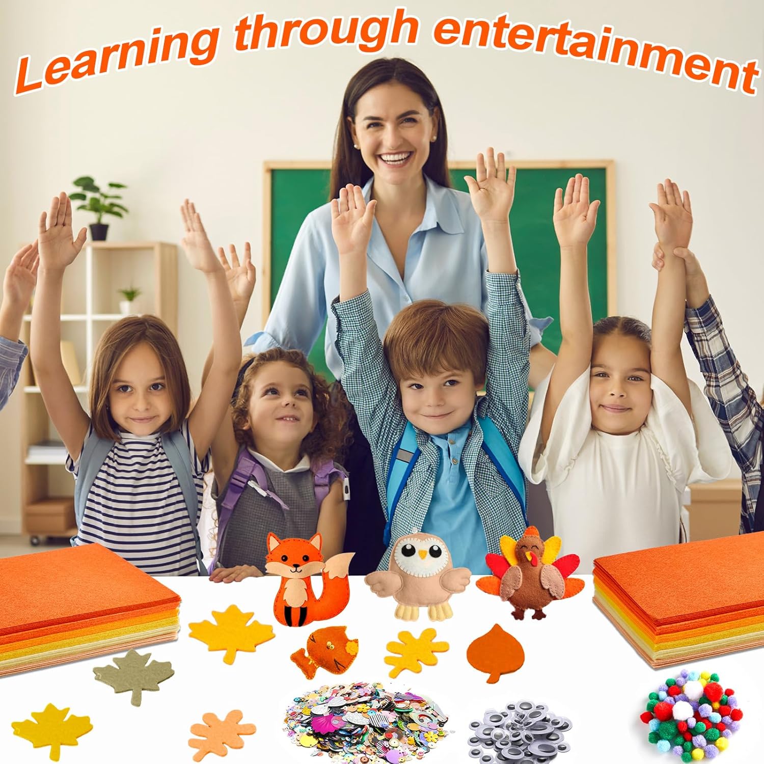- Assorted Colors & Abundant Supplies: This set includes 42 high-quality felt fabric sheets in 6 rich fall-themed shades: light orange, pale beige, light yellow, orange, yellow, dark orange (20 x 30 cm / 8 x 12 inches). Each color comes with 7 sheets, and you’ll also get a bag of fun wiggle eyes, glitter, and pom poms. Whether you’re creating small accents or large projects, these autumn soft felt fabric sheets provide endless possibilities for your DIY crafting needs.