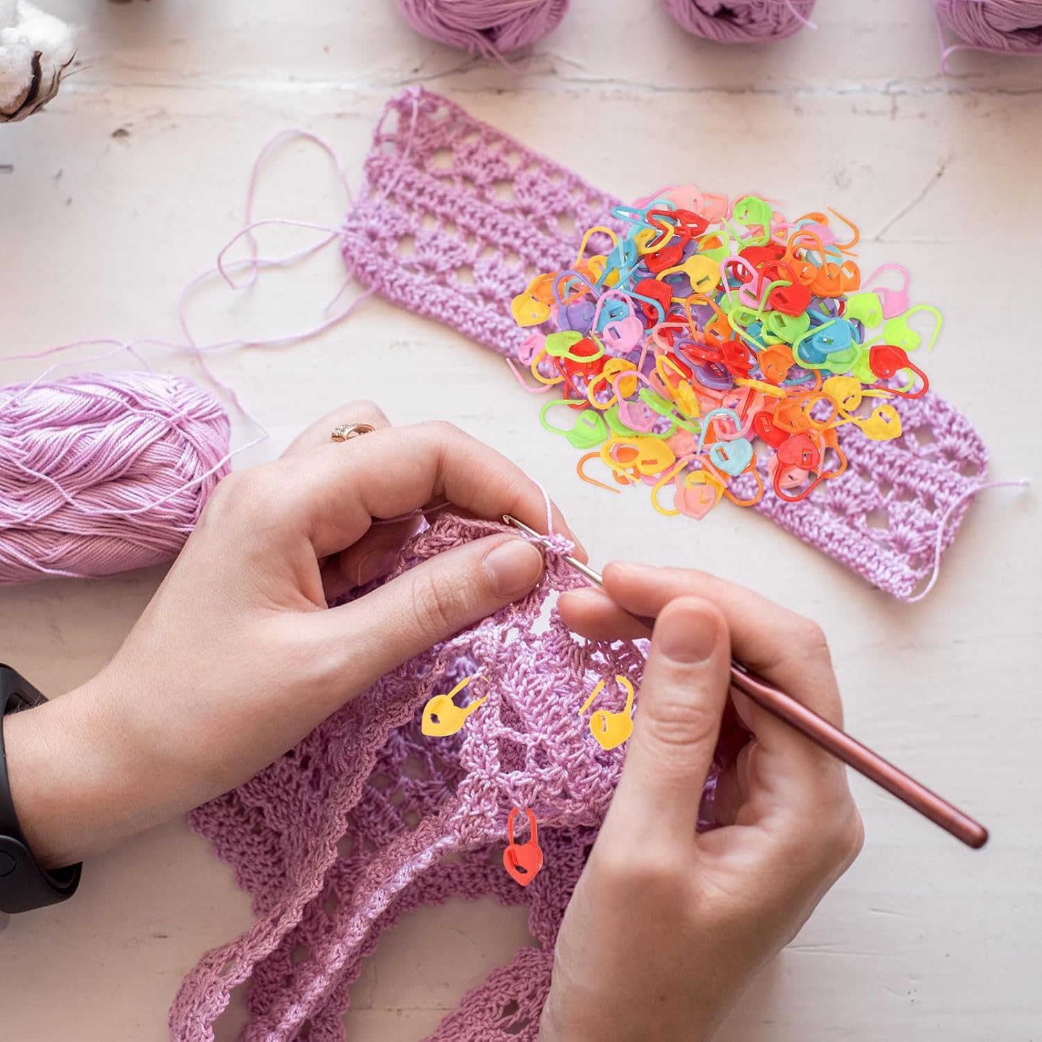 - Removable Knit Markers: these crochet markers can be easily hooked onto any fabric to mark where knitting patterns need to be changed or repeated, helpful for projects such as crochet or needlework.