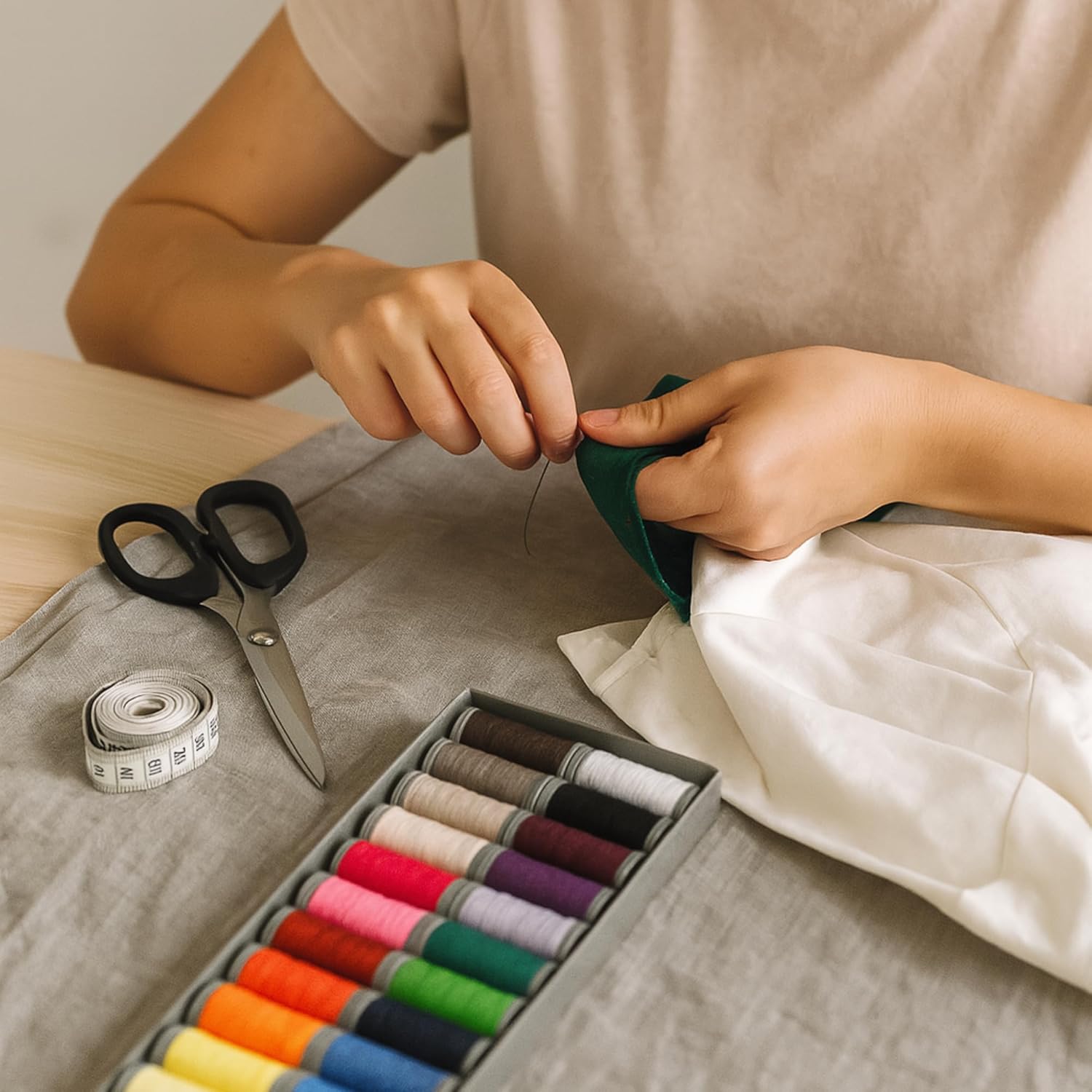 - Versatile Set for Quilting, Embroidery, Dressmaking, and More Whether you're a professional tailor, sewing enthusiast, quilter, or DIY crafter, this set is a must-have for your sewing kit. The strong yet soft thread works beautifully for hemming, decorative stitching, serging, and hand embroidery. The included clips and measuring tape add extra convenience, making this a complete set for all your sewing and crafting needs.