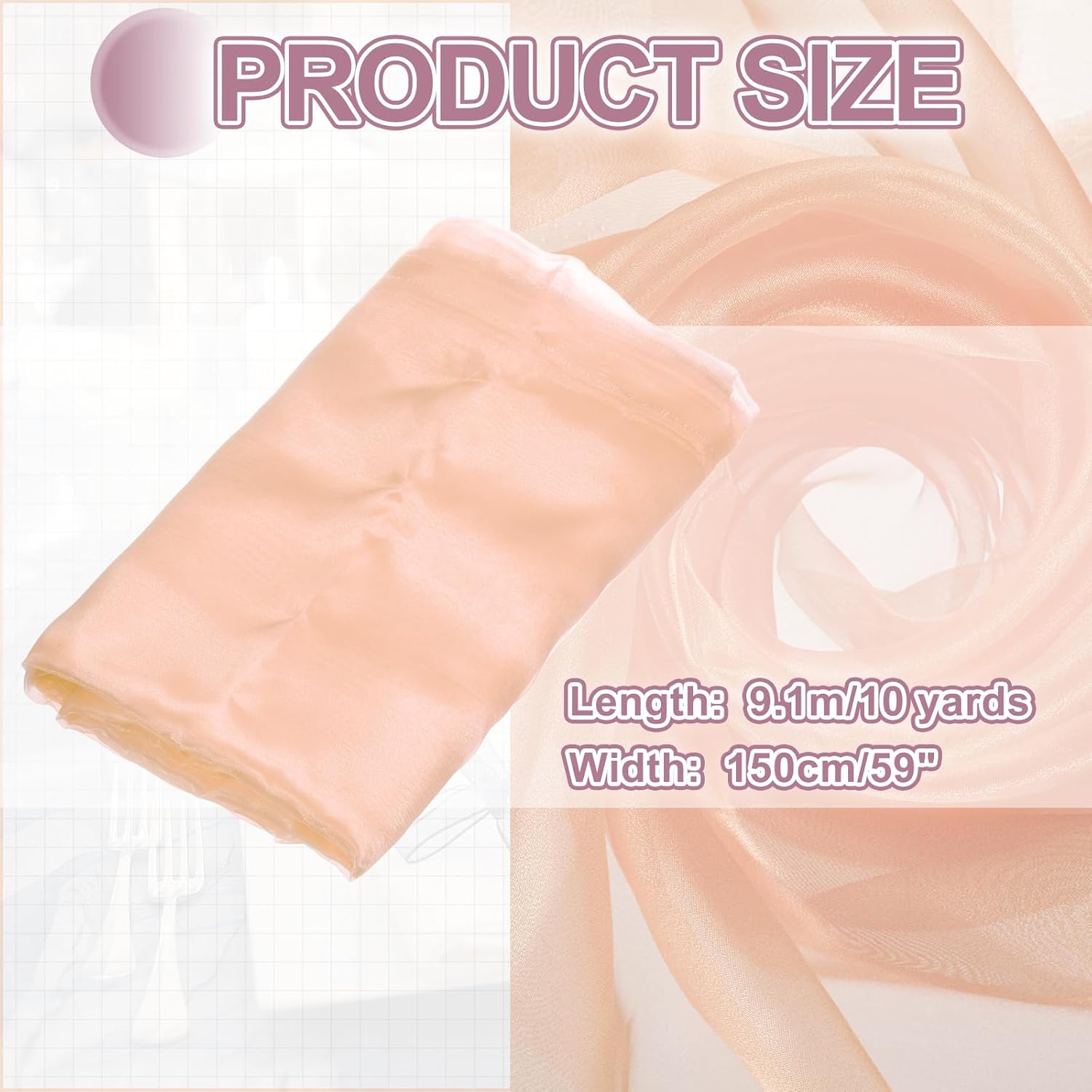 - The organza fabric is in the size of 10 yards x 59 inches/ 9.1m x 150cm (LxW), providing ample fabric for large-scale designs, making it good for wedding dresses, curtains, or event installations.