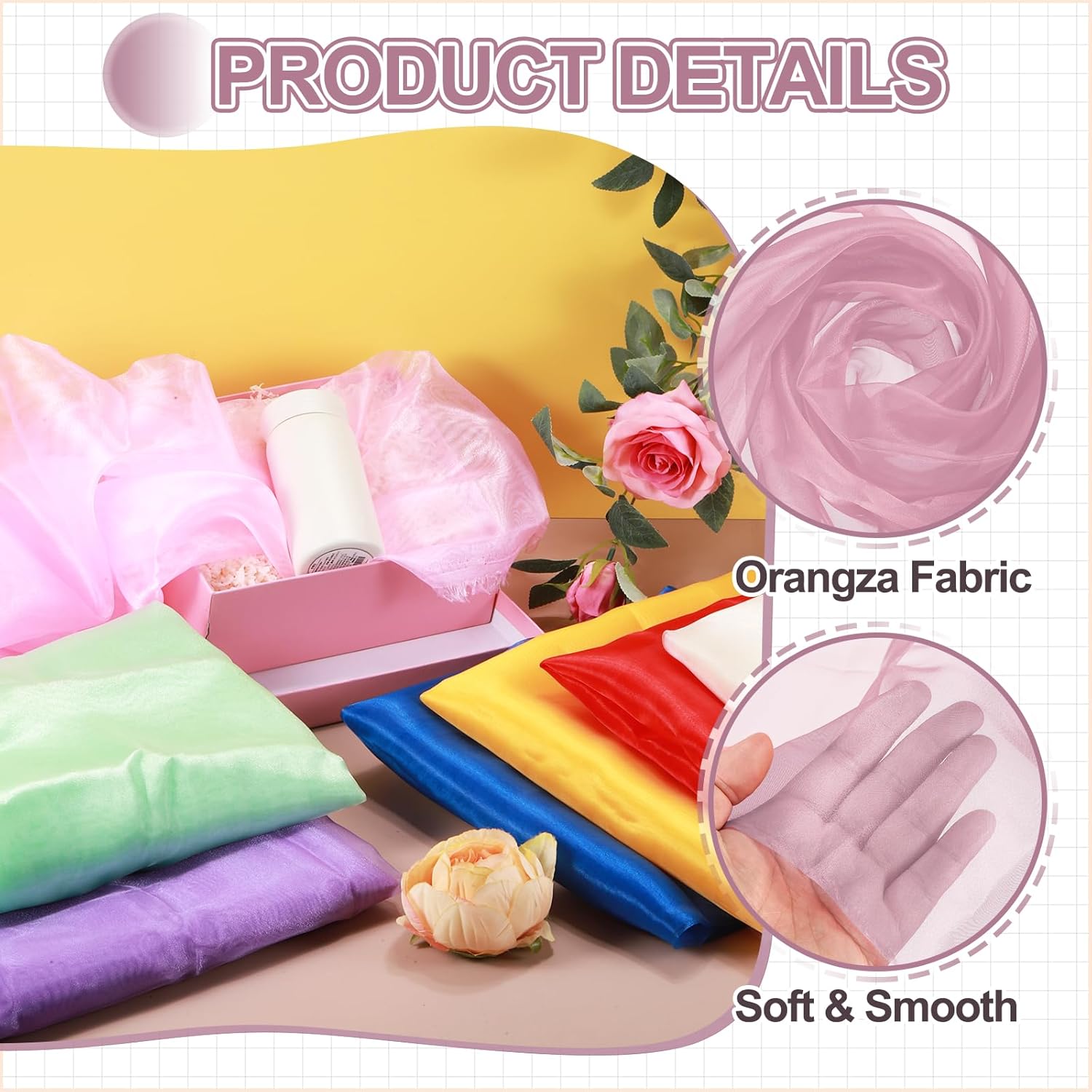 - The organza fabric is in the size of 2 yards x 59 inches/ 1.8m x 150cm (LxW), providing ample fabric for large-scale designs, making it good for wedding dresses, curtains, or event installations.